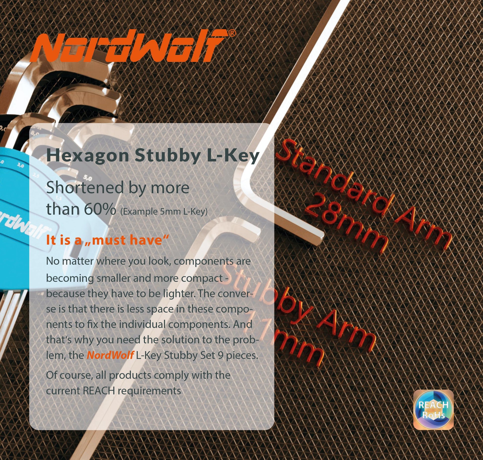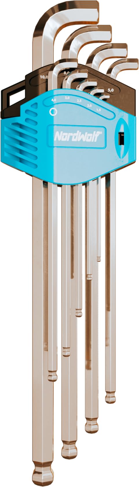 NordWolf 9-Piece Metric Stubby Allen Wrench Set, S2 Steel Long Arm Ball End Hex L-Keys, Sizes 1.5mm to 10mm