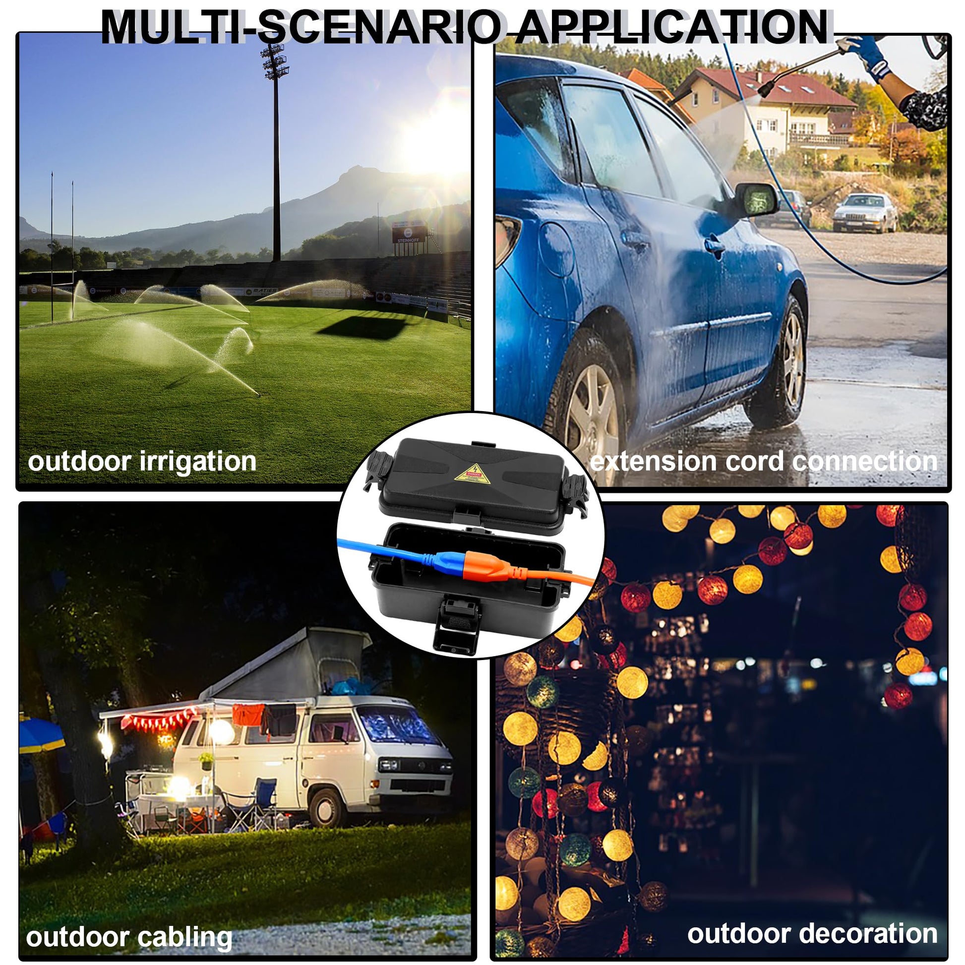 - WALL-HANGABLE CONNECTION BOX: This is a hangable weatherproof outdoor outlet box, the bottom of the electrical box is designed with 2 hanging holes for easy hanging, which can be installed according to the need to hang on the wall, tree and other locations that need to be hung for use, more convenient to use.
