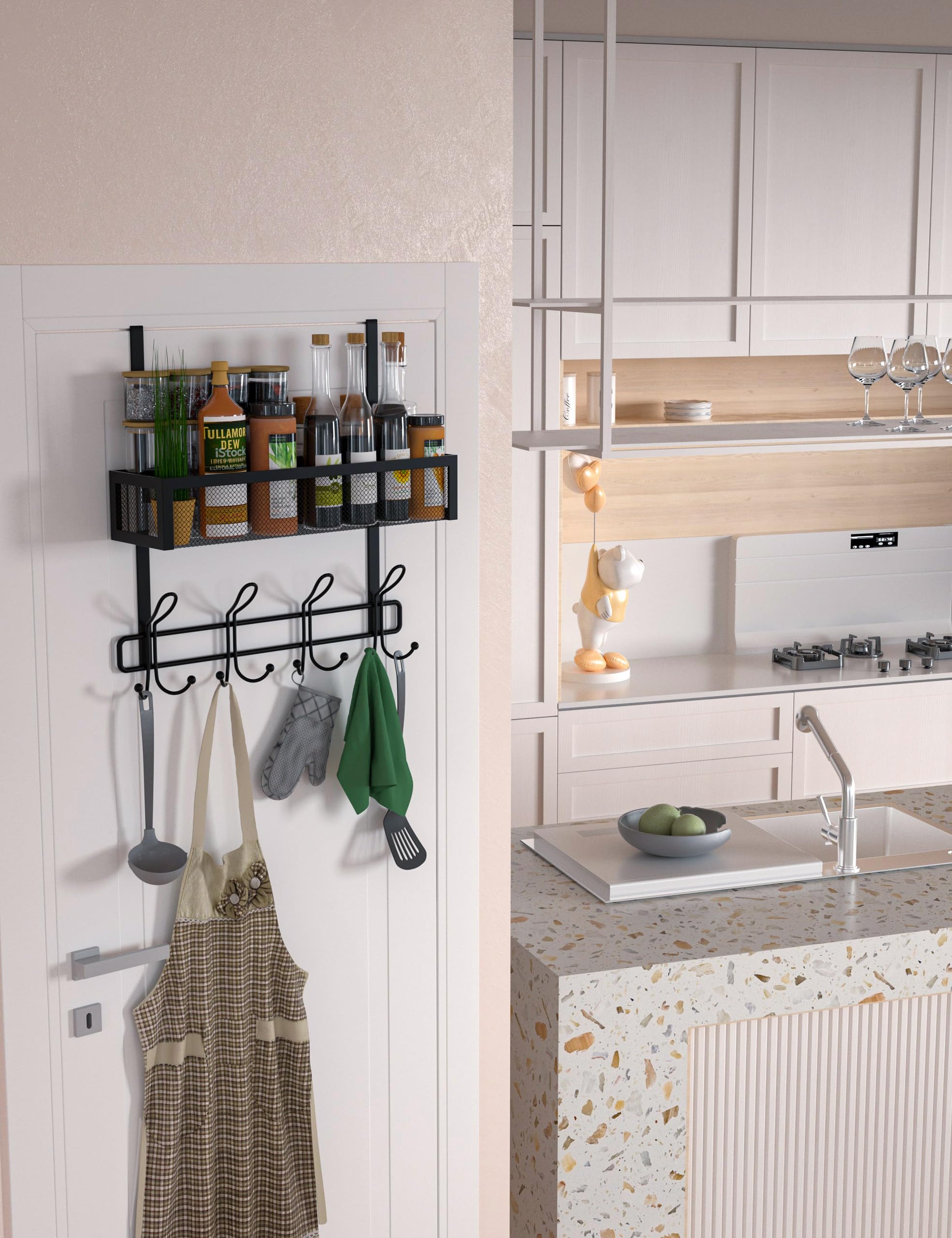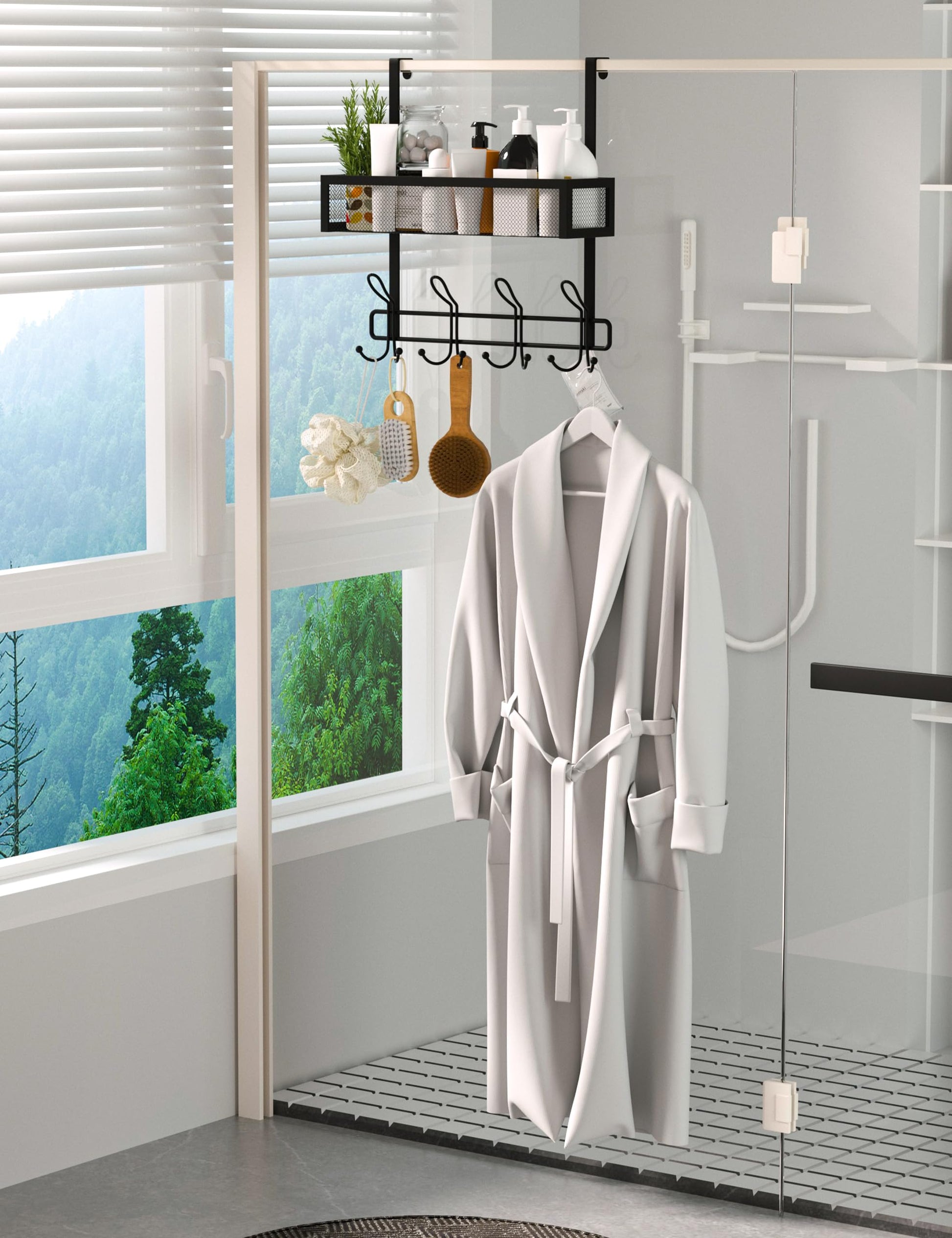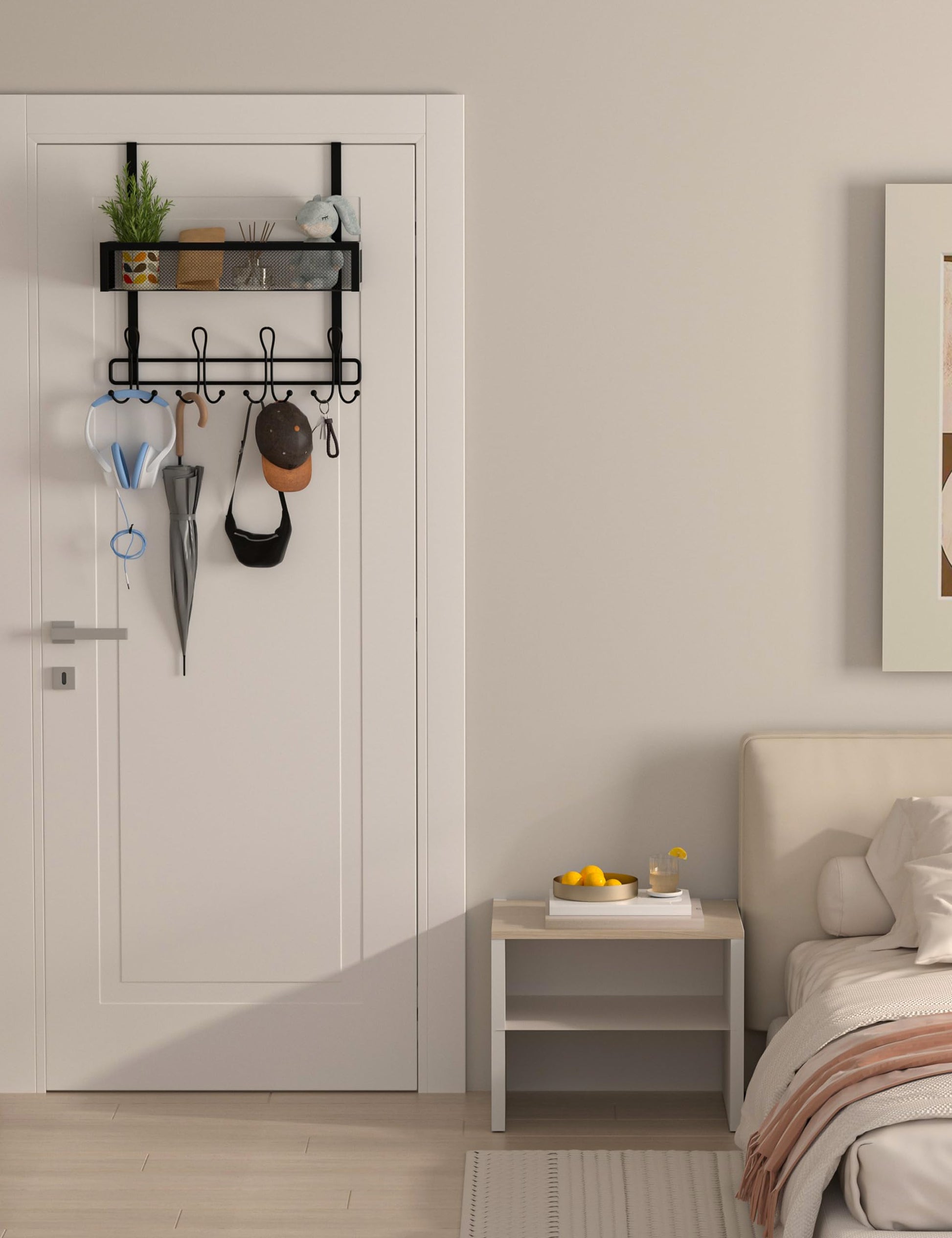 - 【A Tidy Home】 - About the Door Hook Organizer has 4 sets of hook combinations, each of which consists of 3 hooks. The 12 hooks and basket make for a tidy home, and the spherical end design prevents items from slipping out.