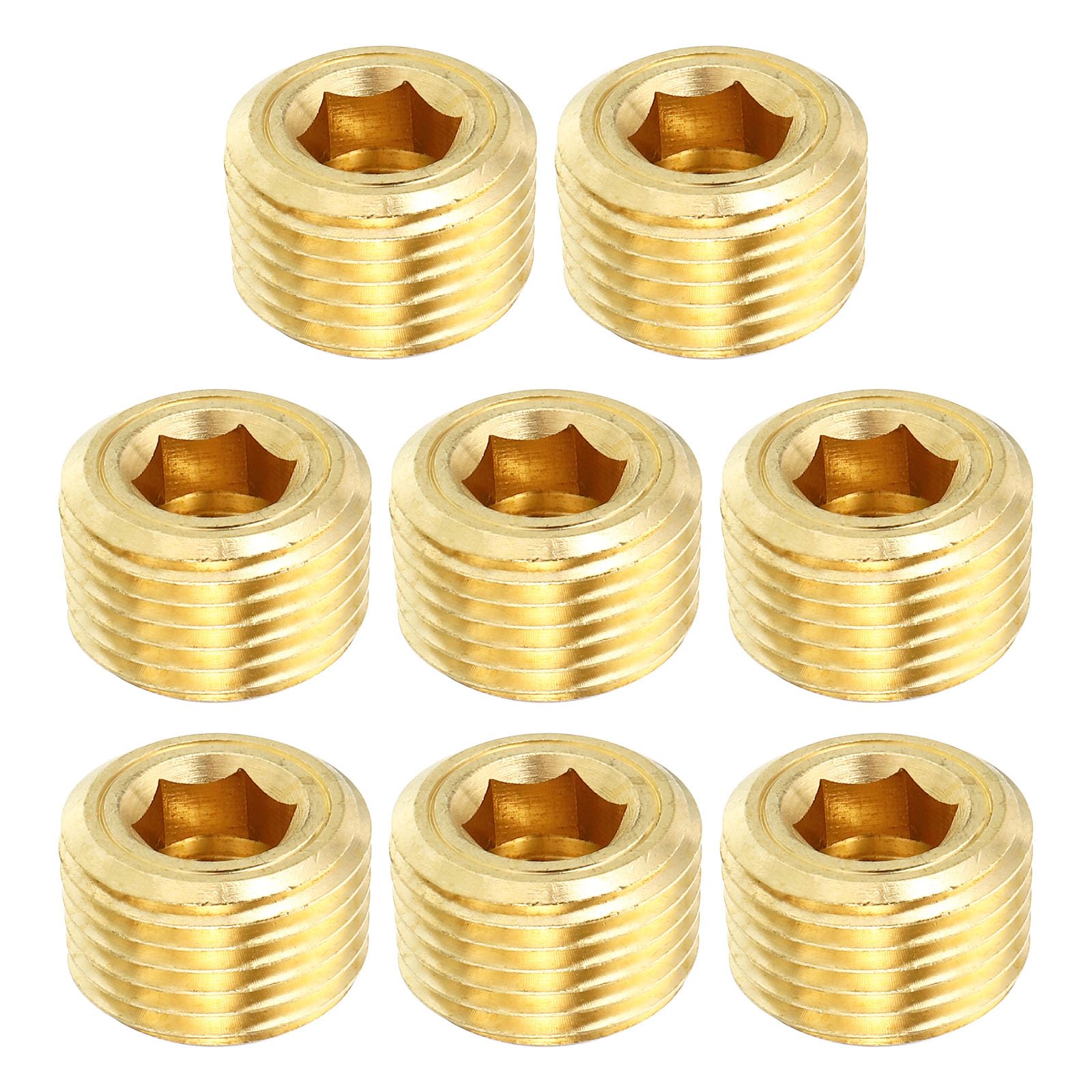 - Material: Brass; External Thread Size: 1/2"NPT; Hex Width Inside the Head: 10mm / 0.39 Inch; Total Height: 13.5mm / 0.53 Inch; Packing List: 8 x Countersunk Pipe Plug