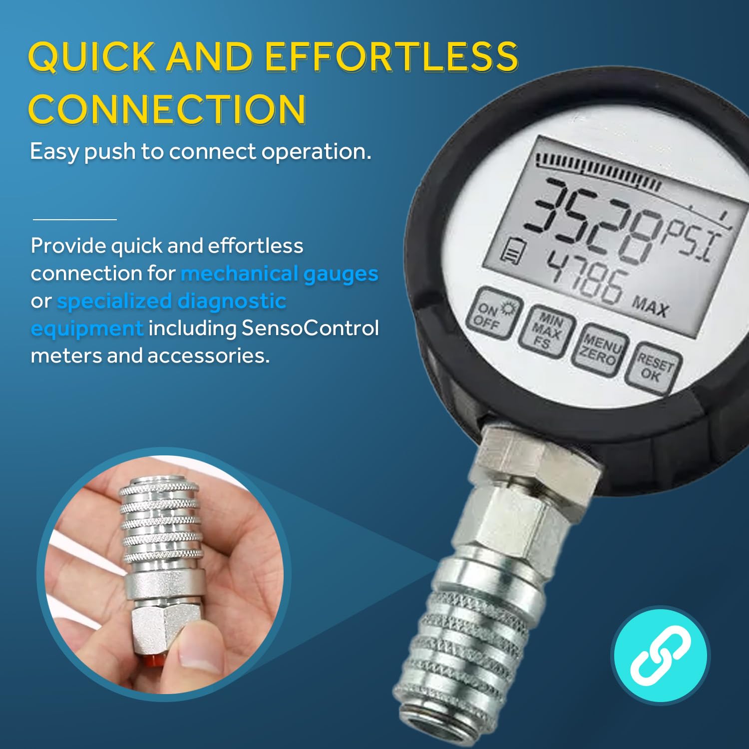 - Easy Connection: Easy push to connect operation. Provide quick and effortless connection for mechanical gauges or specialized diagnostic equipment including SensoControl meters and accessories.