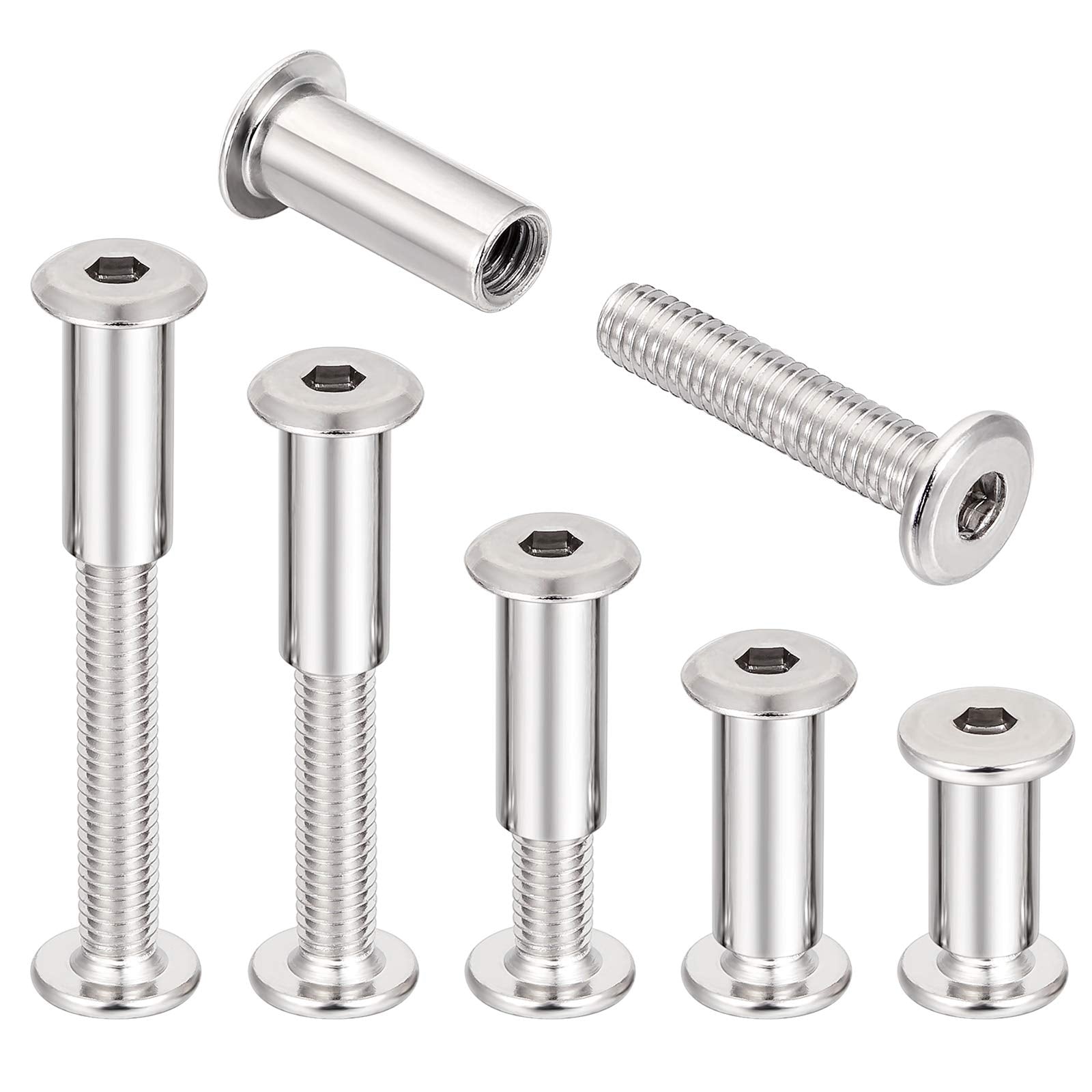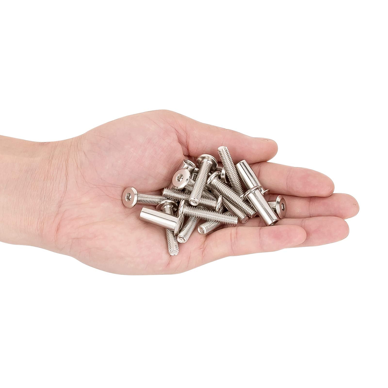 PGMJ 40 Pieces M6 Binding Screws Posts Rivet Socket Cap Connecting M6 Bolts Cap Nuts Assortment Kit for Baby Bed Furniture,Leather Saddles Purses Belt Repair,Scrapbook Photo Albums Binding (M6x30mm-D)