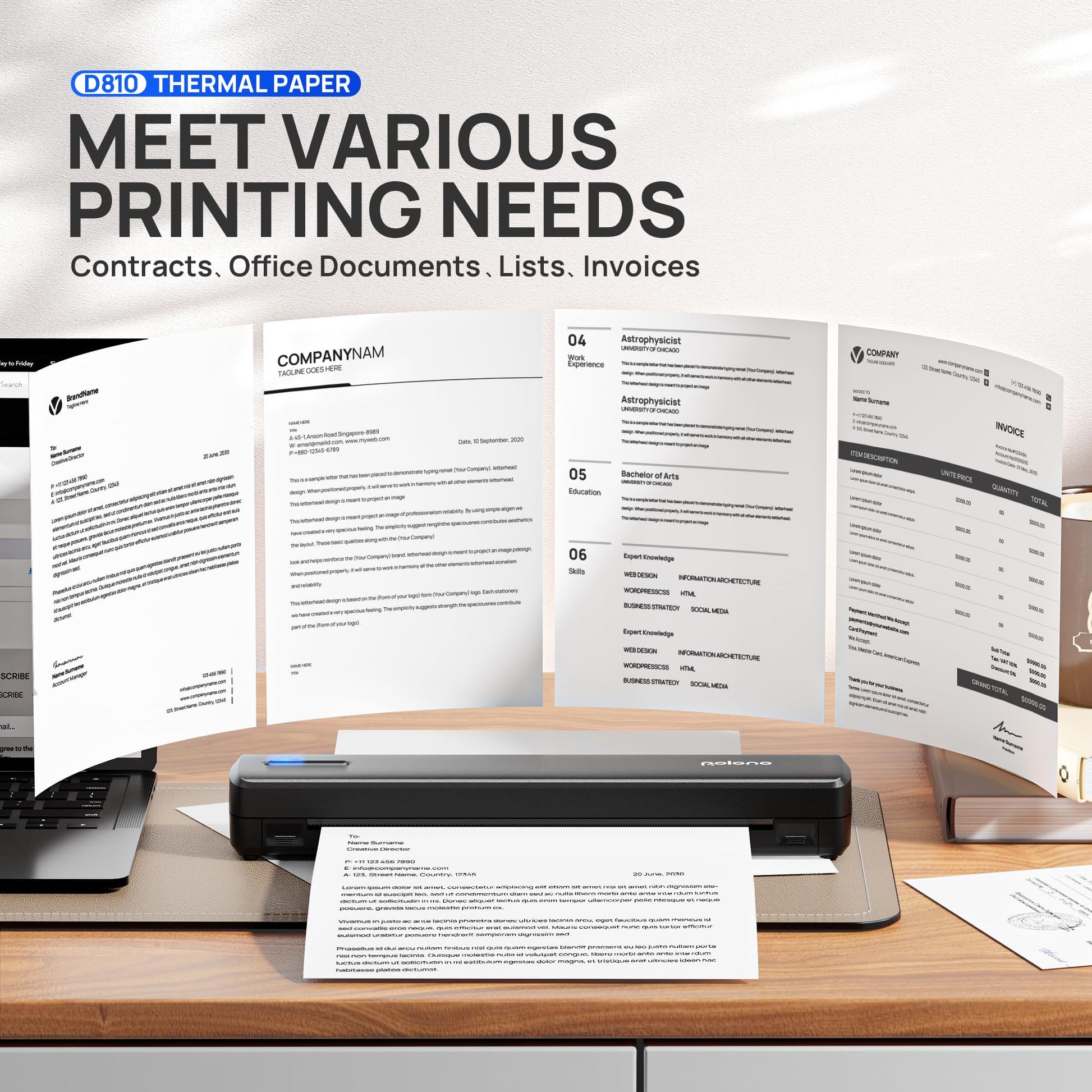 - Widely Applicable - Letter thermal paper is suitable for various portable printing scenarios, such as business, travel, outdoor, and office; you can put it in your briefcase or backpack and can print anywhere, anytime. Ideal for business and travel printing
