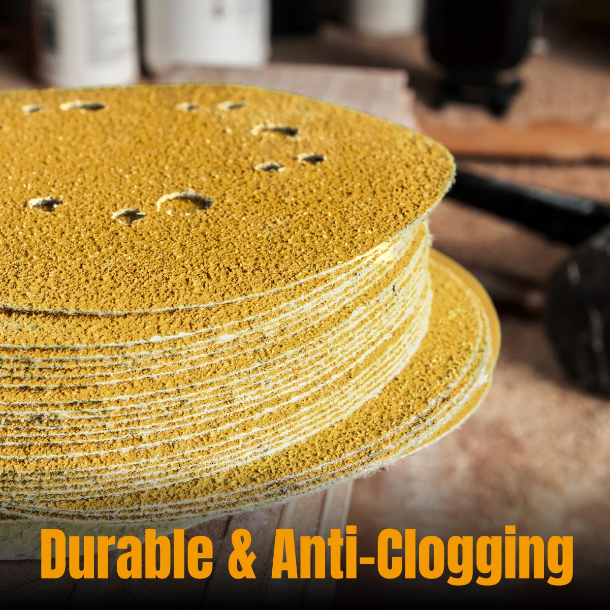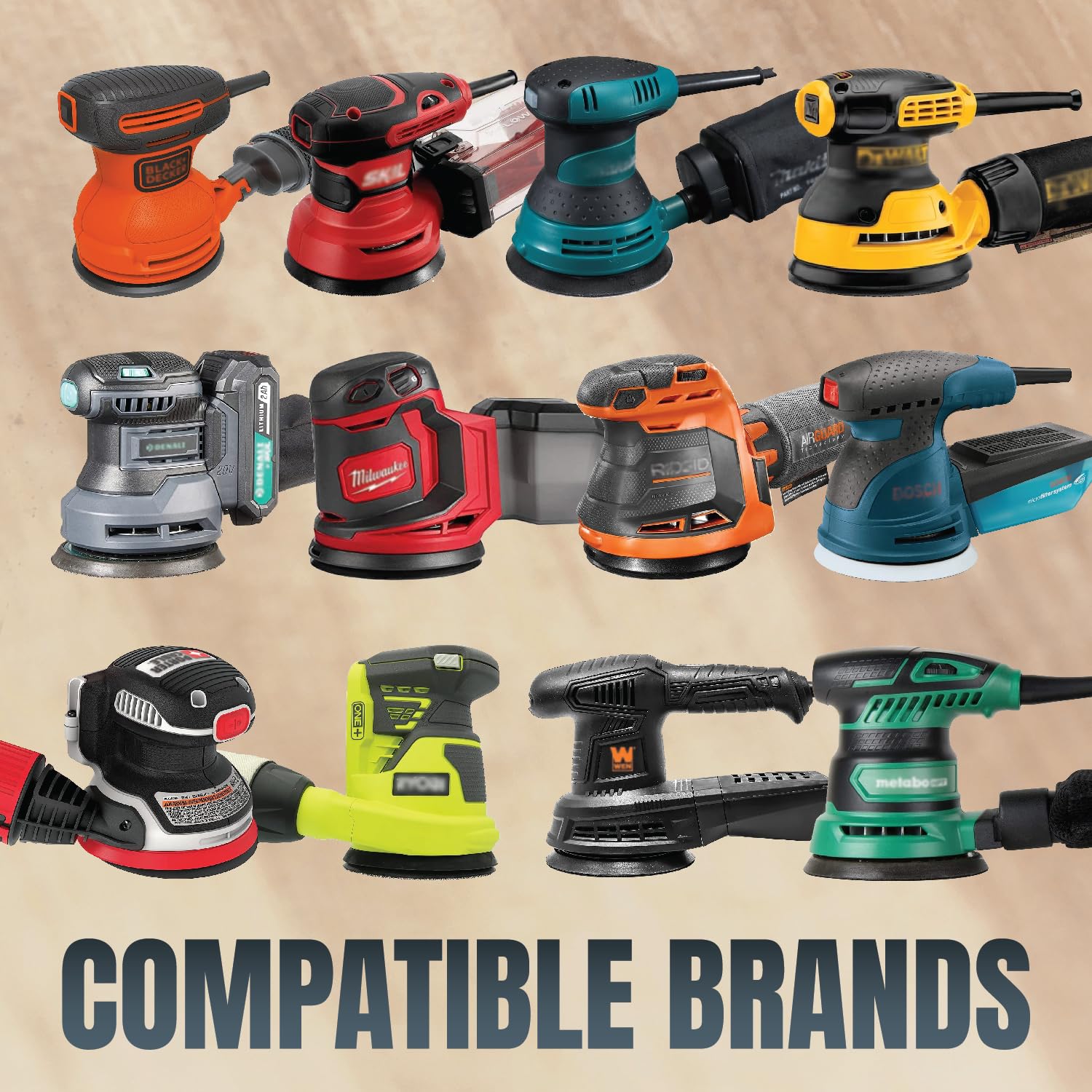 - FEATURES: 8 pre-punched holes designed for uniform - high precision sanding, exceptional golden stearate coating with anti-clogging and non-loading properties, plus a sanding abrasive that is moisture and heat resistant. Compatible with Skil, Denali, BLACK+DECKER, DeWalt, Wen, Ryobi, Bosch, Makita, Porter-Cable & Ridgid.
