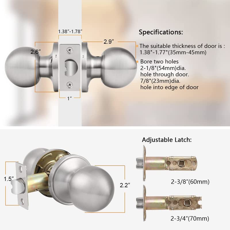 - Steel Adjustable Latch : It has adjustable universal latch - 2-3/8 inch or 2-3/4 inch. Fits doors 1-1/4 inch to 1-3/4 inch.