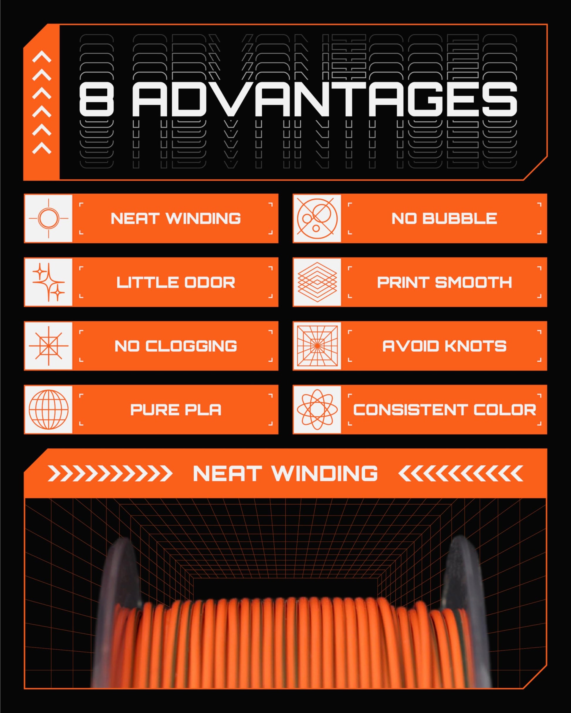 - 【Neat Winding & Tangle Free & Moisture Free】- The R3D PLA filament is meticulously winded to prevent any tangling problems. It is then carefully dried, vacuum-sealed. NOTE: After use, kindly pass the filament through the fixed hole to prevent any potential tangles.