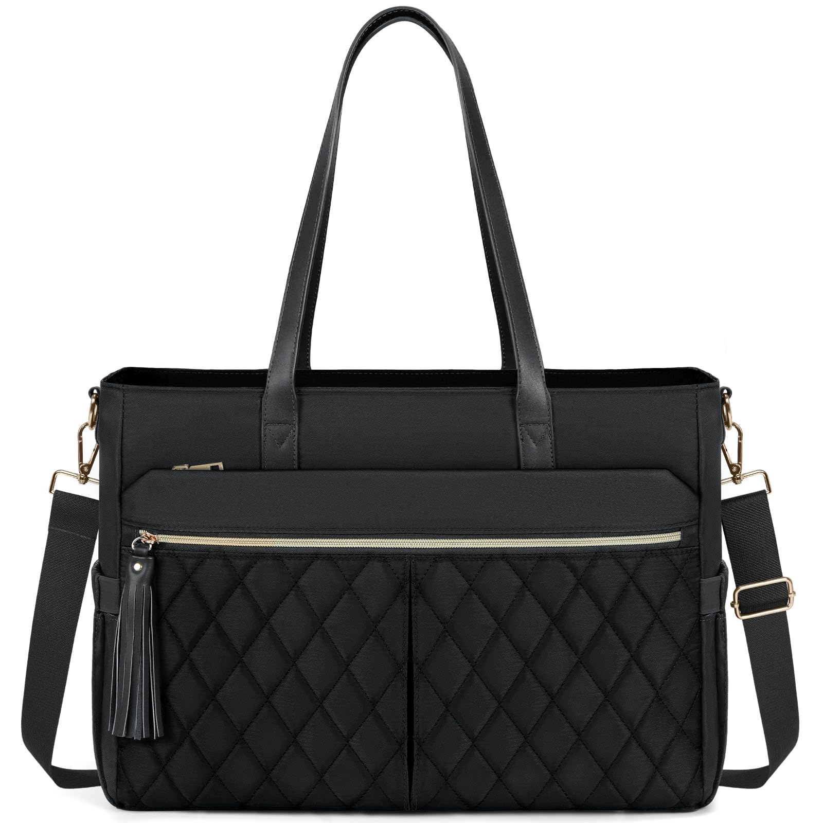 - High Quality Material:This laptop tote bags for women is made of durable waterproof polyester fiber material, Equipped with gold zippers and reinforced with stitching for enhanced durability. The 4 metal feet on the bottom reduce friction and scratches on the bottom of the large tote bags for women, and thanks to its excellent support structure, it can be stood up on its own. The modern and sleek look creates a timeless and stylish aesthetic that can be easily paired with any outfit or occasion.