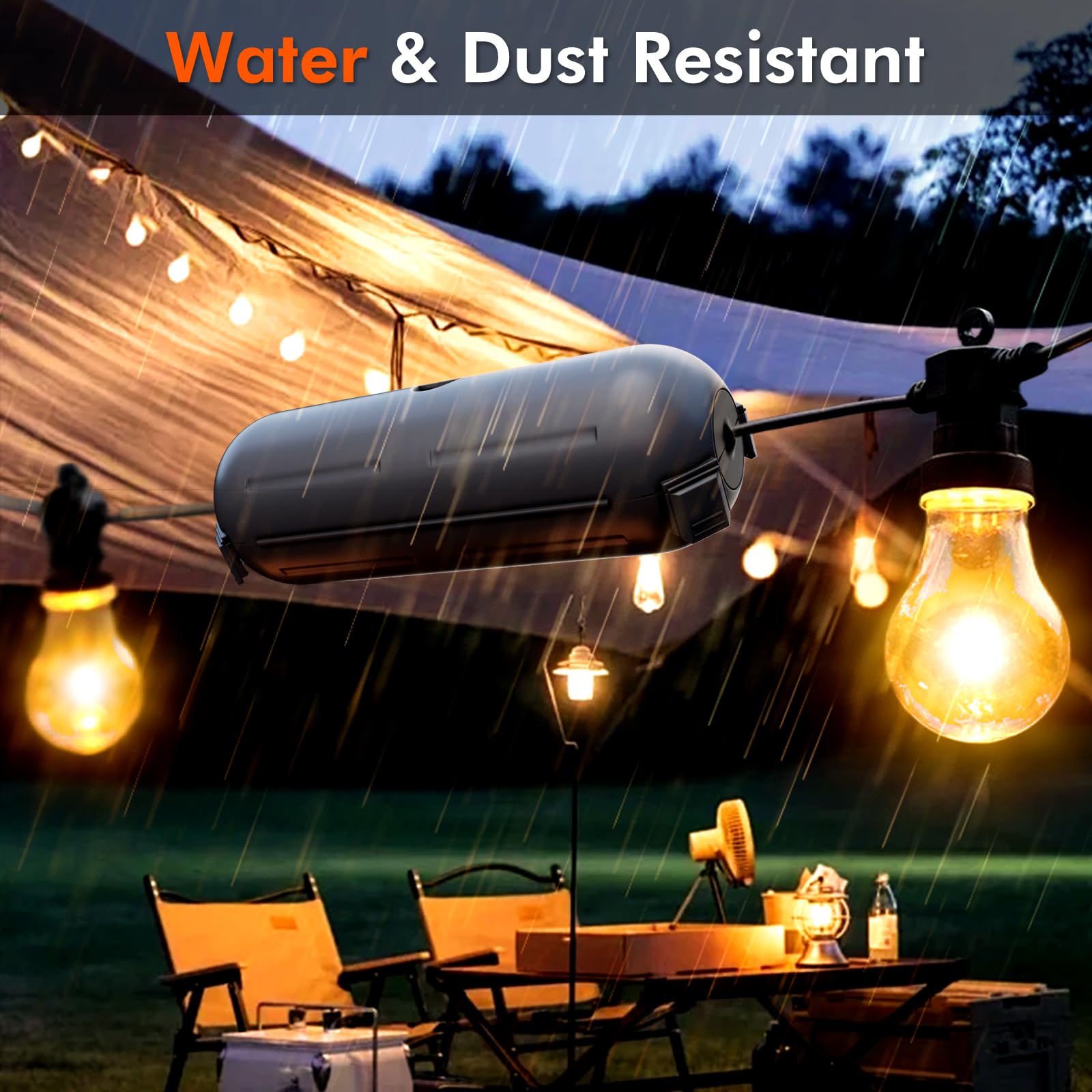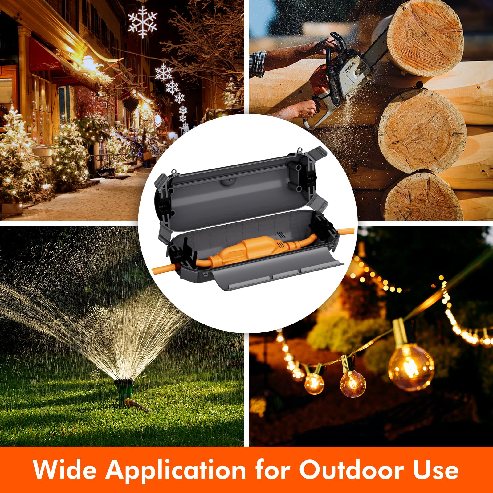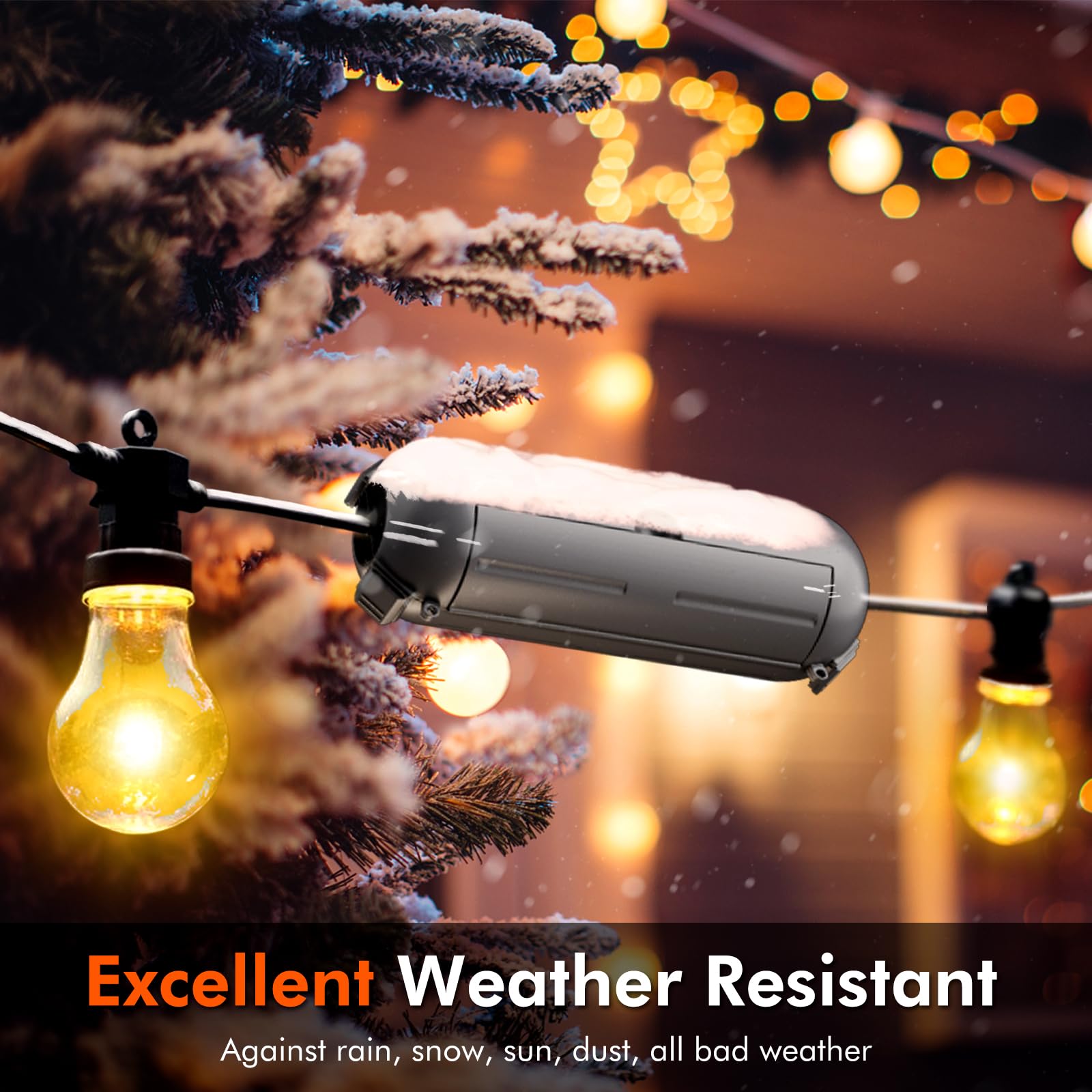 - Water & Dust Resistant: IP44 waterproof with rubber seals at both ends, protect against water, snow, rain, dust, dirt, and more. Great to protect outdoor string light, landscape lighting, pool pump, garden power tool, fountain, Christmas and other holiday decorations.