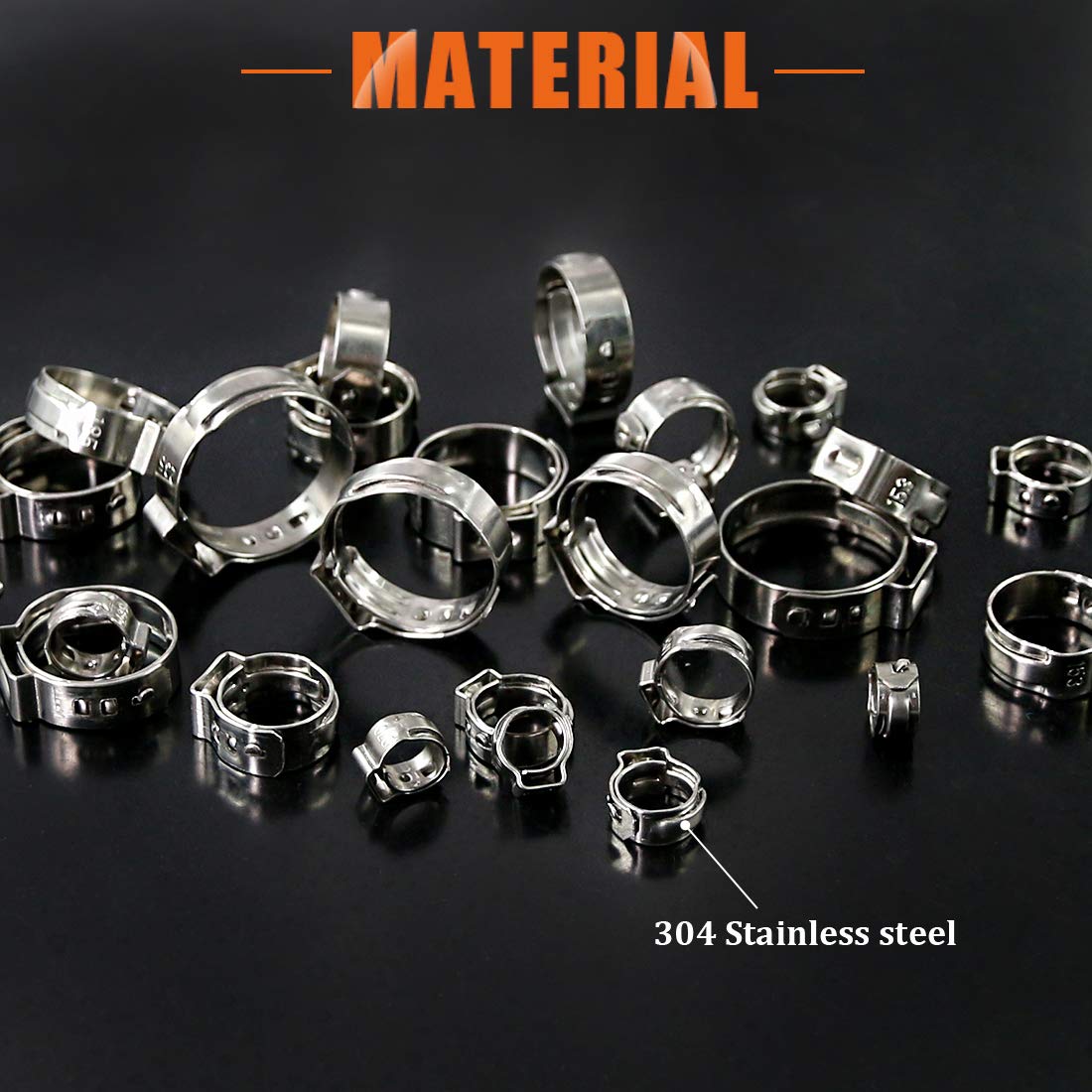 - ✔TOP QUALITY --- These single ear hose clamps are made of 304 stainless steel, which are durable and sturdy, it has high temperature resistance, tighter seal, corrosion resistant, anti-rust, the advanced material will ensure its work in highly performance.
