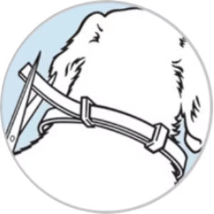 - Adjust for a snug but comfortable fit (two fingers should fit between collar and neck).