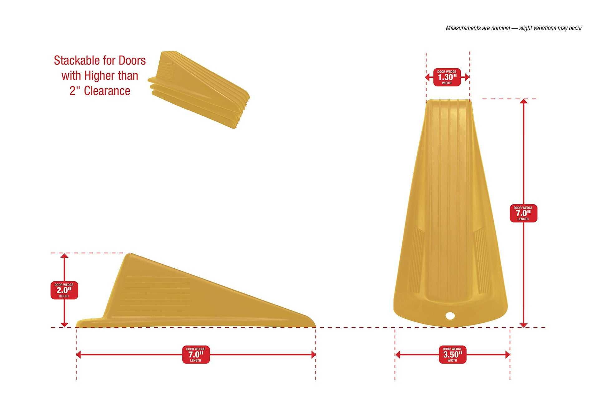 - Safely wedges doors with up to 2" floor clearance