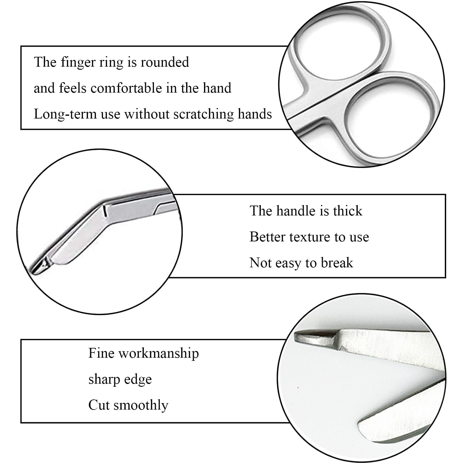 Details: The bandage scissors have an ergonomically designed handle, which is comfortable to hold and easy to operate.