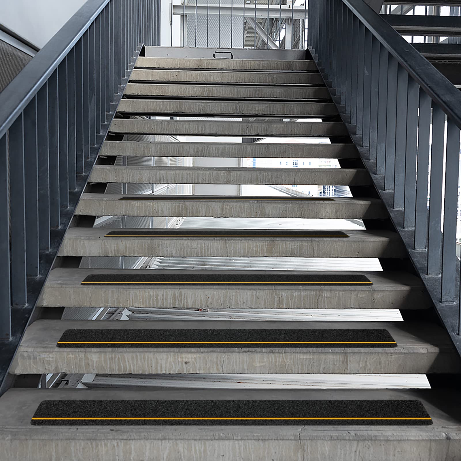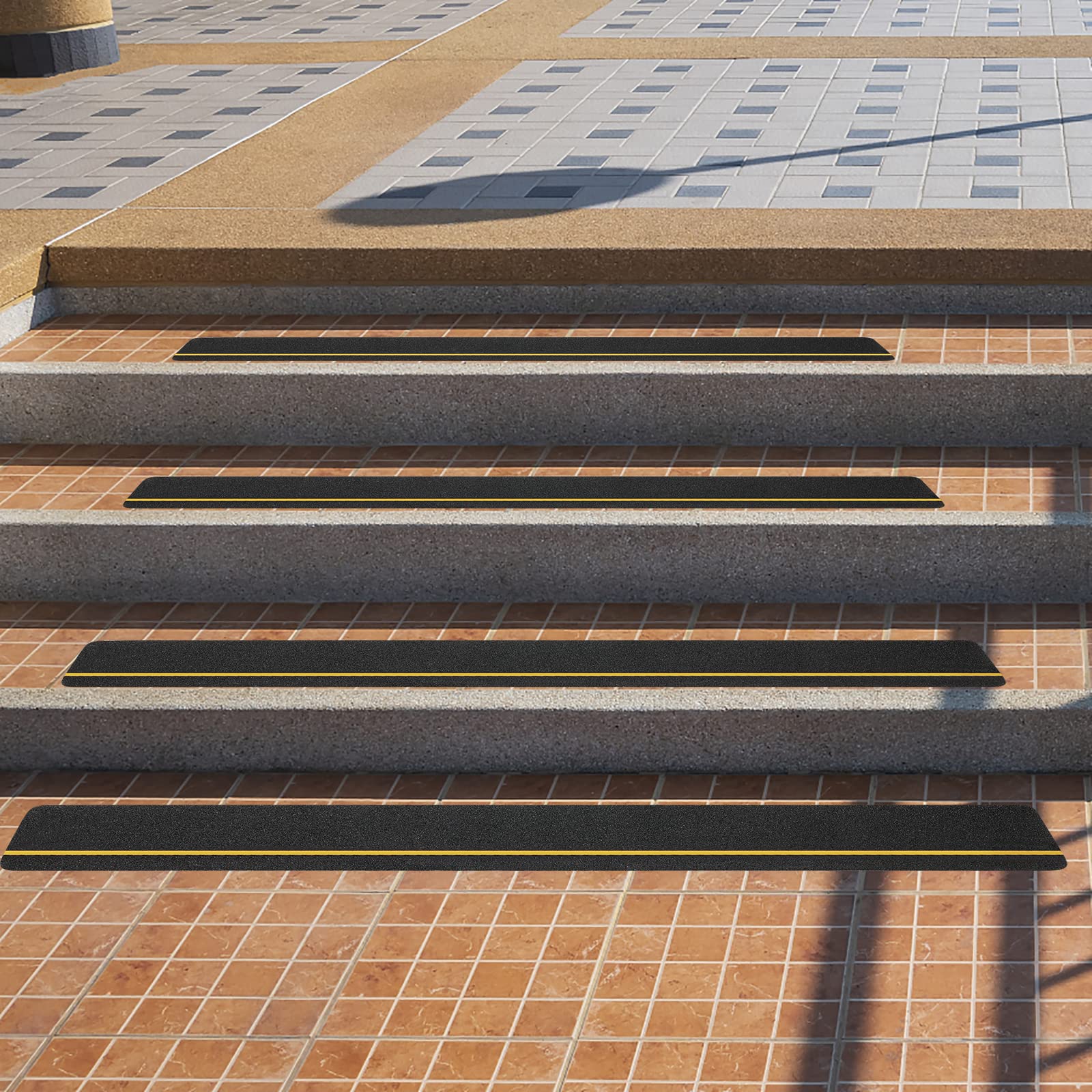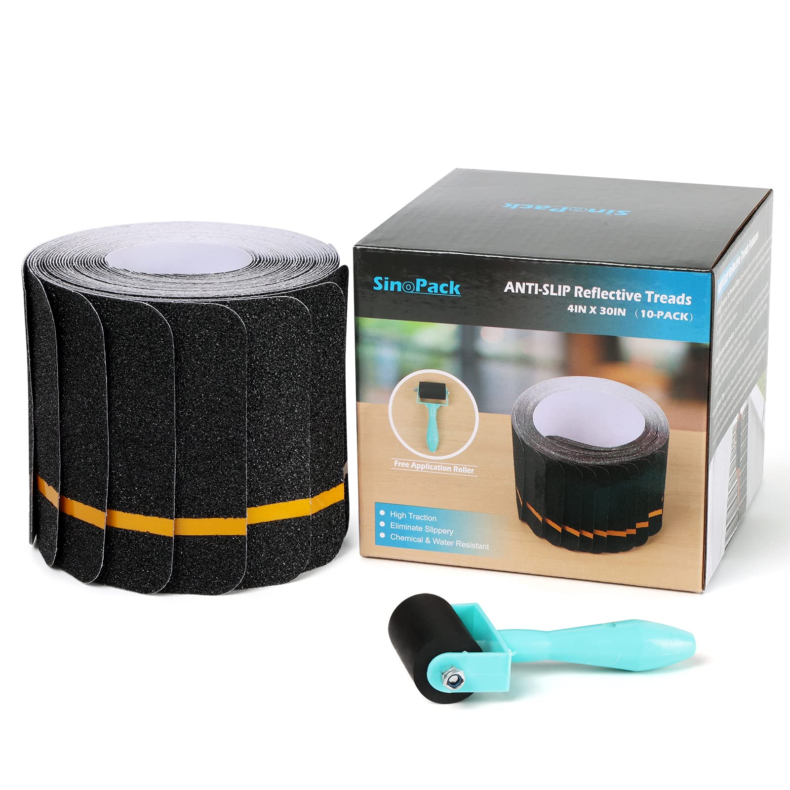 SinoPack Anti Slip Tape with Yellow Reflective Strips (10-Pack) 4'' x 30'' Waterproof Non Skid Tapes, Best Grip Non Slip Strips Tape High Traction Friction Abrasive Adhesive for Stairs Step