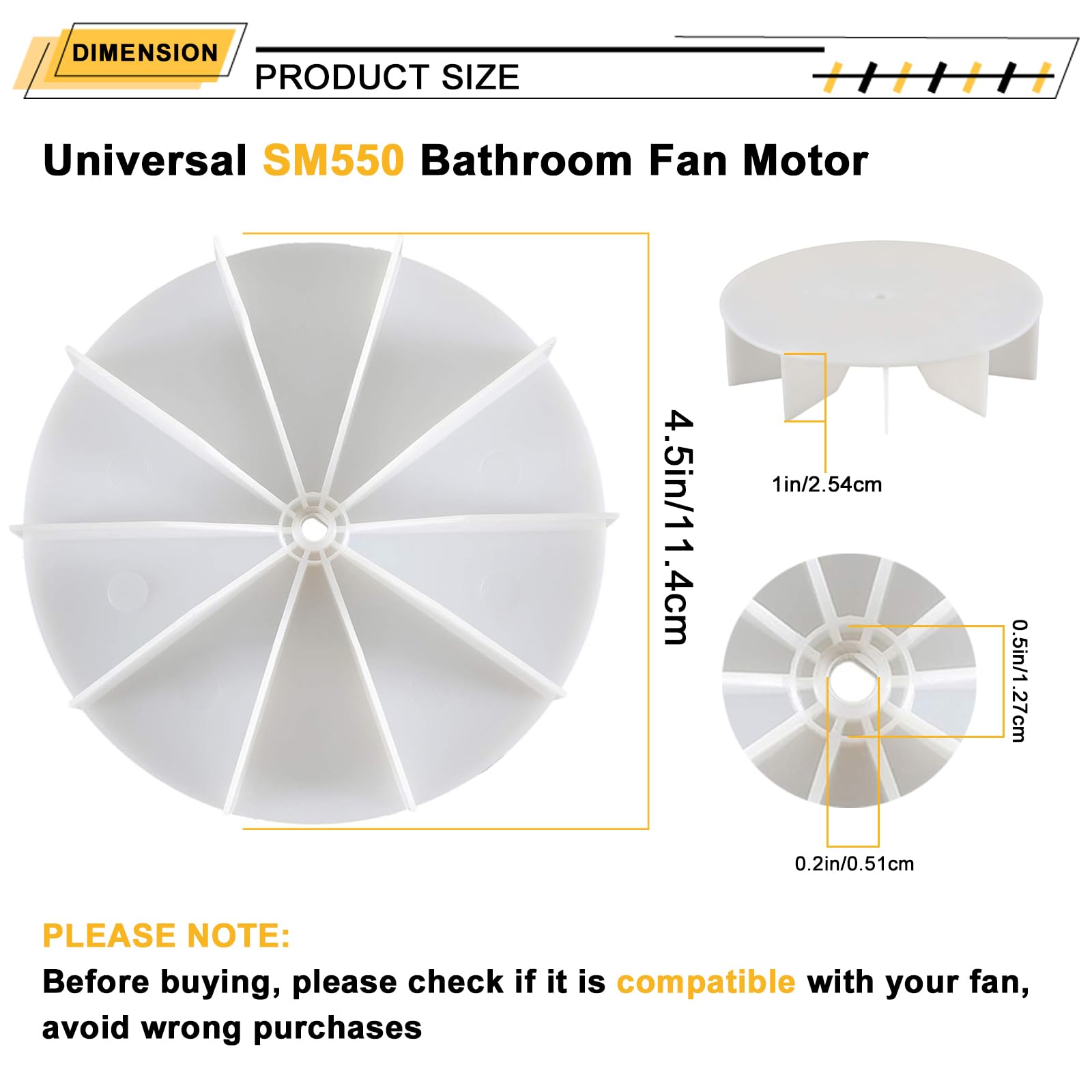 - Complete Bathroom Vent Fan Kit: This kit contains 1 motor and 1 flat/paddle-style fan (4.5 inches), providing everything you need to replace or upgrade your bathroom exhaust fan motor and blower wheel.