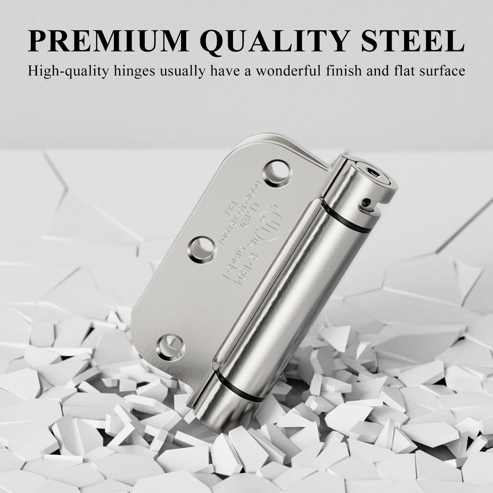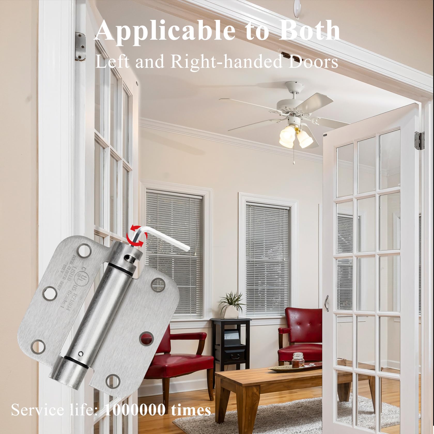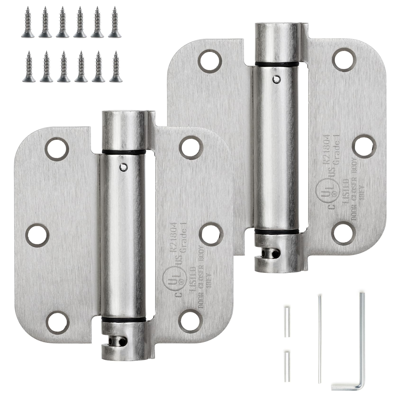 - 【Self-closing Design】Auto close door hinges are made of durable steel construction with a self-closing mechanism with a 5/8 inch radius and a built-in spring mechanism that allows the door to automatically return to the closed position after opening. Designed to be mounted on standard 1-3/8 inch thick doors, it ensures that the door can be closed quickly after use, avoiding the security risks and energy waste that may result from leaving the door open for long periods of time.