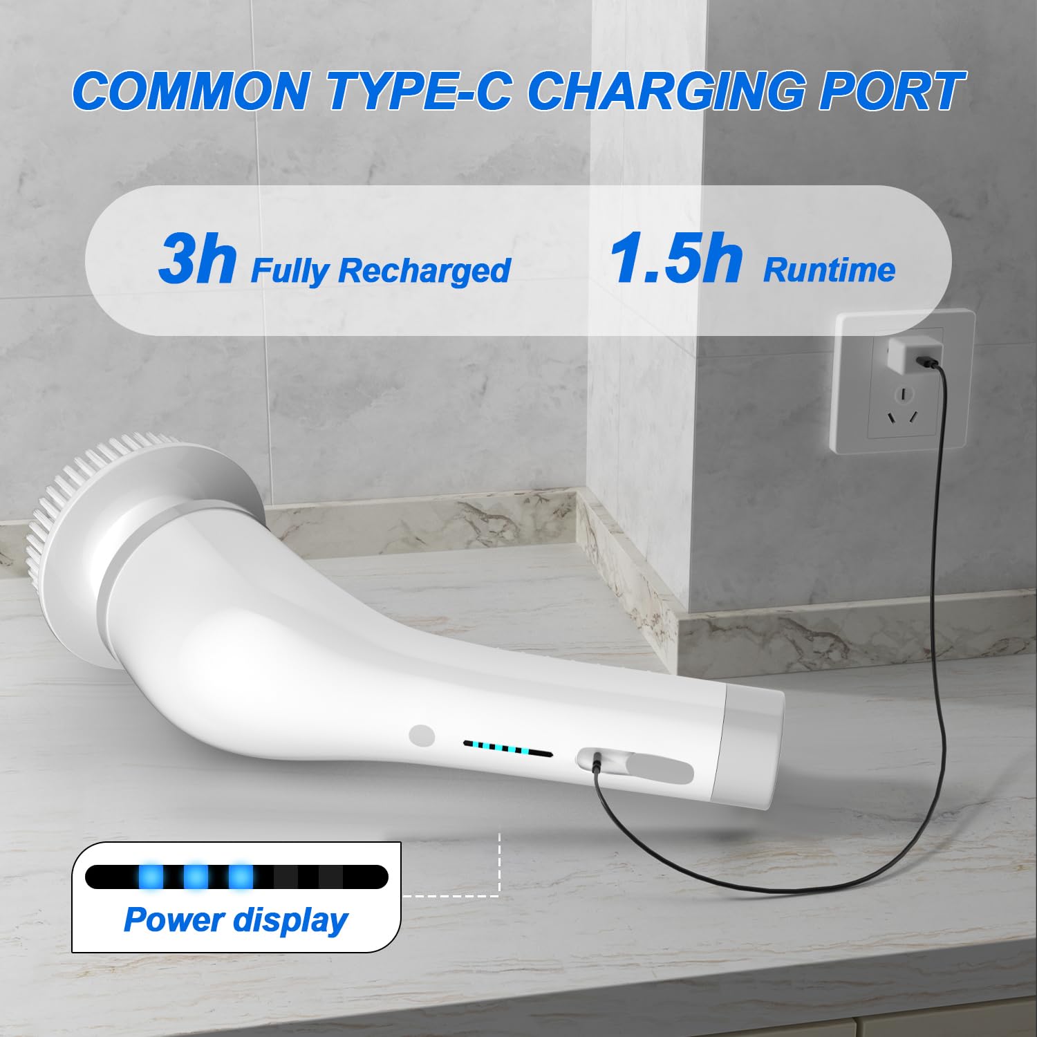 - 【Relieve fatigue - convenient and practical】The main body of the electric spin scrubber’s weight is only 0.8LB, easy to be held for a long time without burden, No more bending and kneeling to clean, Care for your waist and joints. It is very friendly to the elderly and some patients with arthritis, frozen shoulder and low back diseases,The electric cleaning brush using usb charging mode,you can pull it out whenever you use it, get rid of the troubles of traditional cumbersome wires.