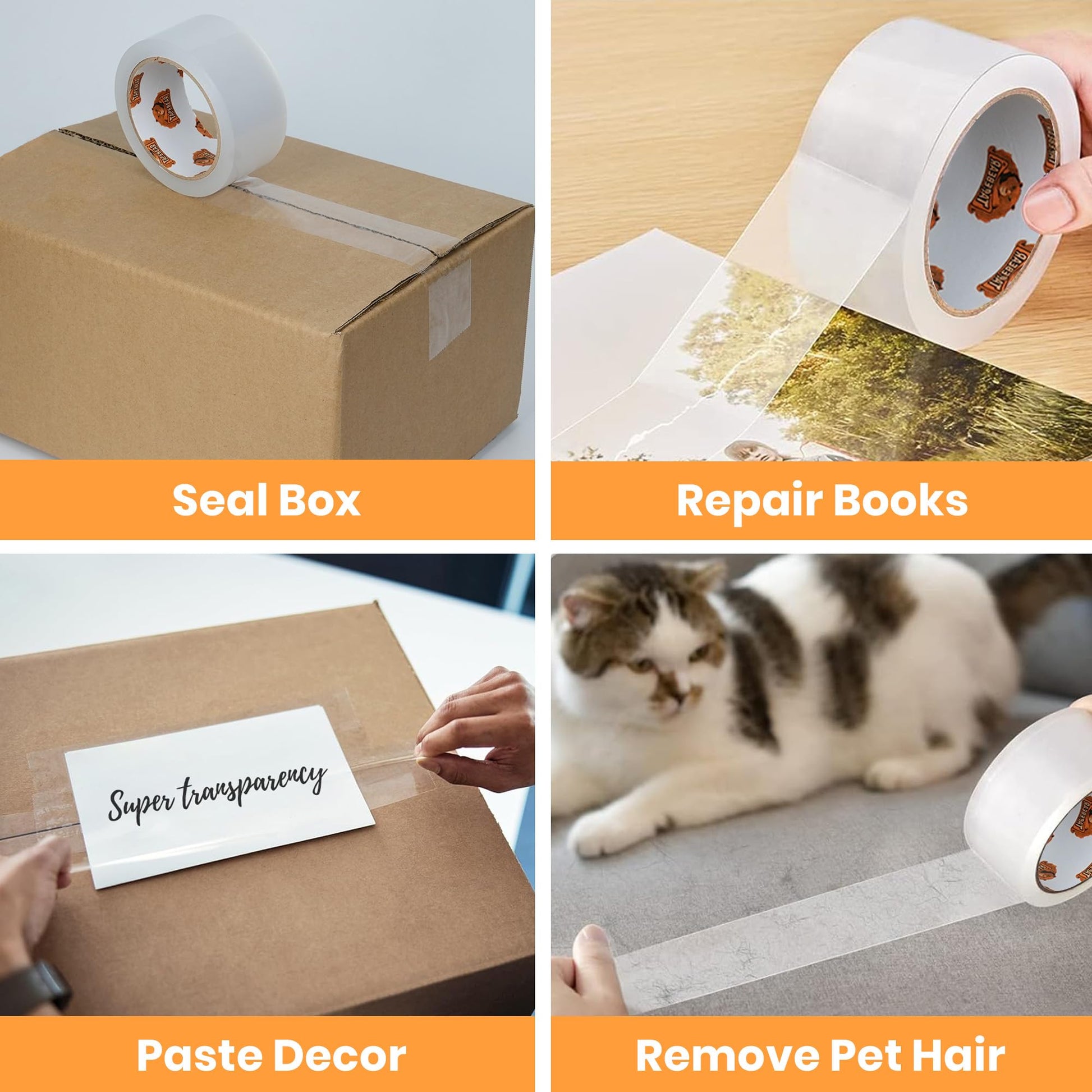 - CRYSTAL CLEAR TAPE ROLLS: TAPEBEAR have always been experts in adhesive tapes, these clear tape rolls is made from strong BOPP acrylic adhesive, not only strong and durable, but also offers aesthetic and professional benefits as it does not detract from the look of the package.