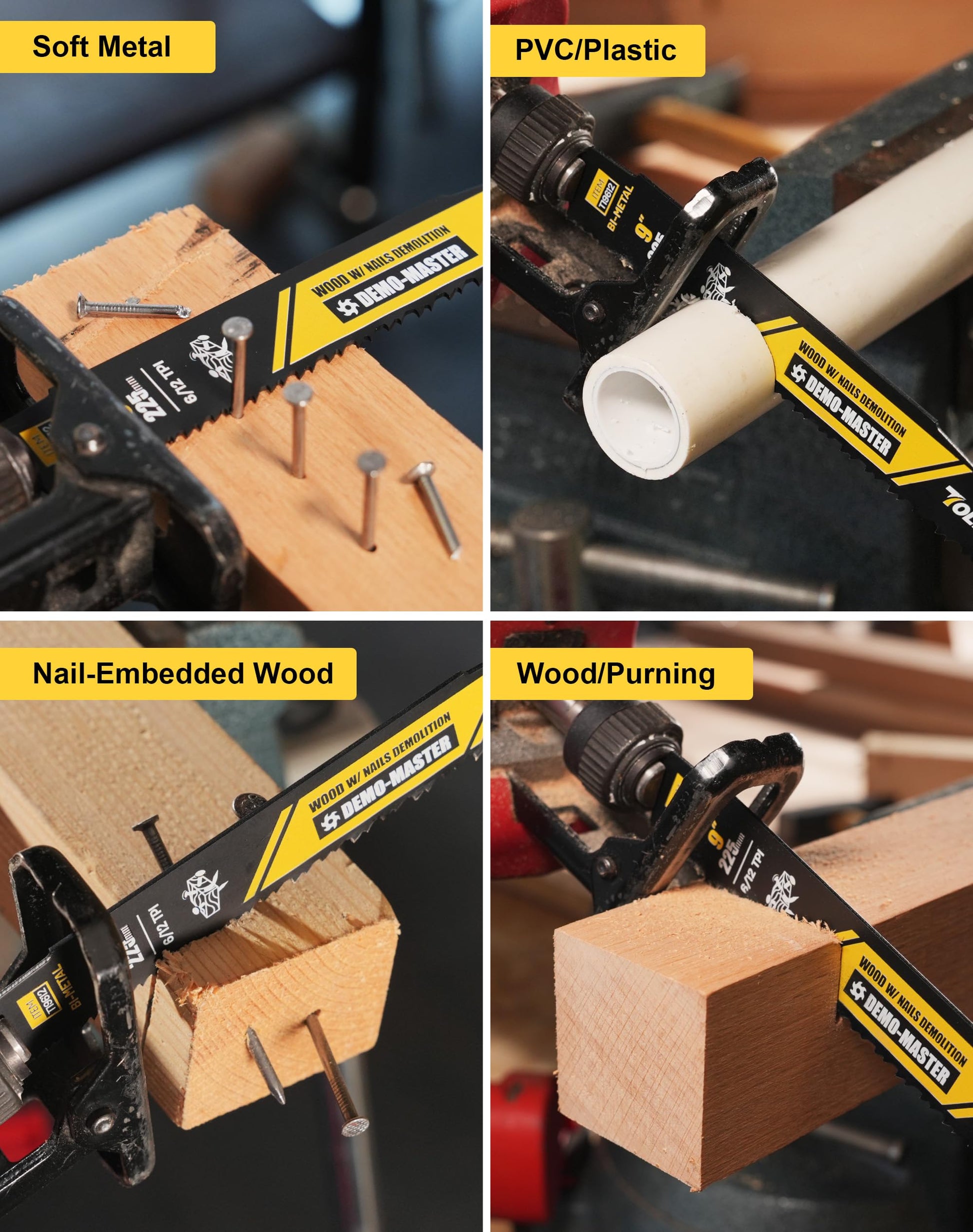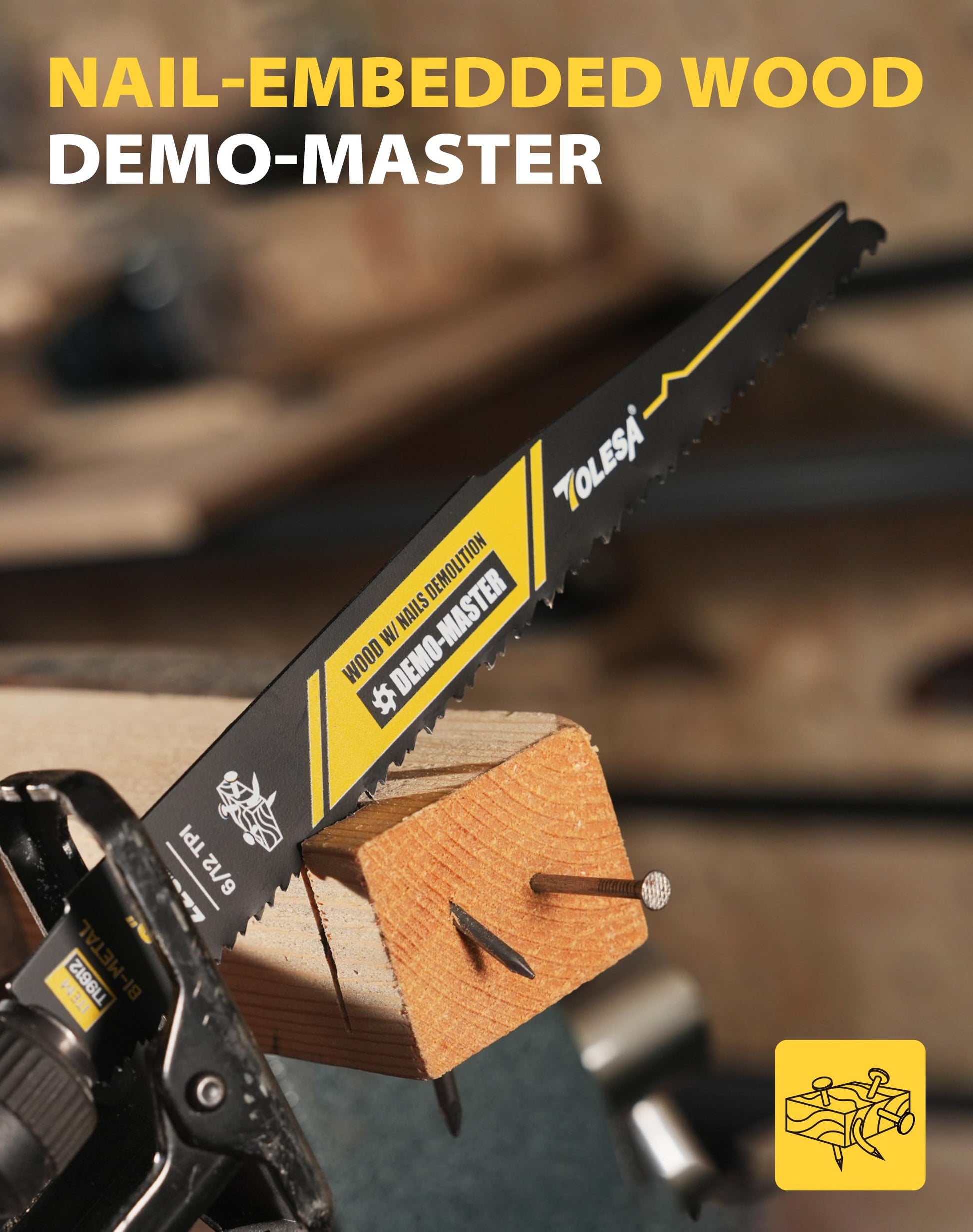 - ✅Excellent Cutting Performance: TOLESA Bi-Metal 6/12T Reciprocating Saw demolition Blades are specifically designed for maximum performance in nail-embedded wood applications. when we trim wood containing nails such as abandoned fences, no longer have to worry about nail damage to the saw blade or frequently replace different kinds of reciprocating saw blades.