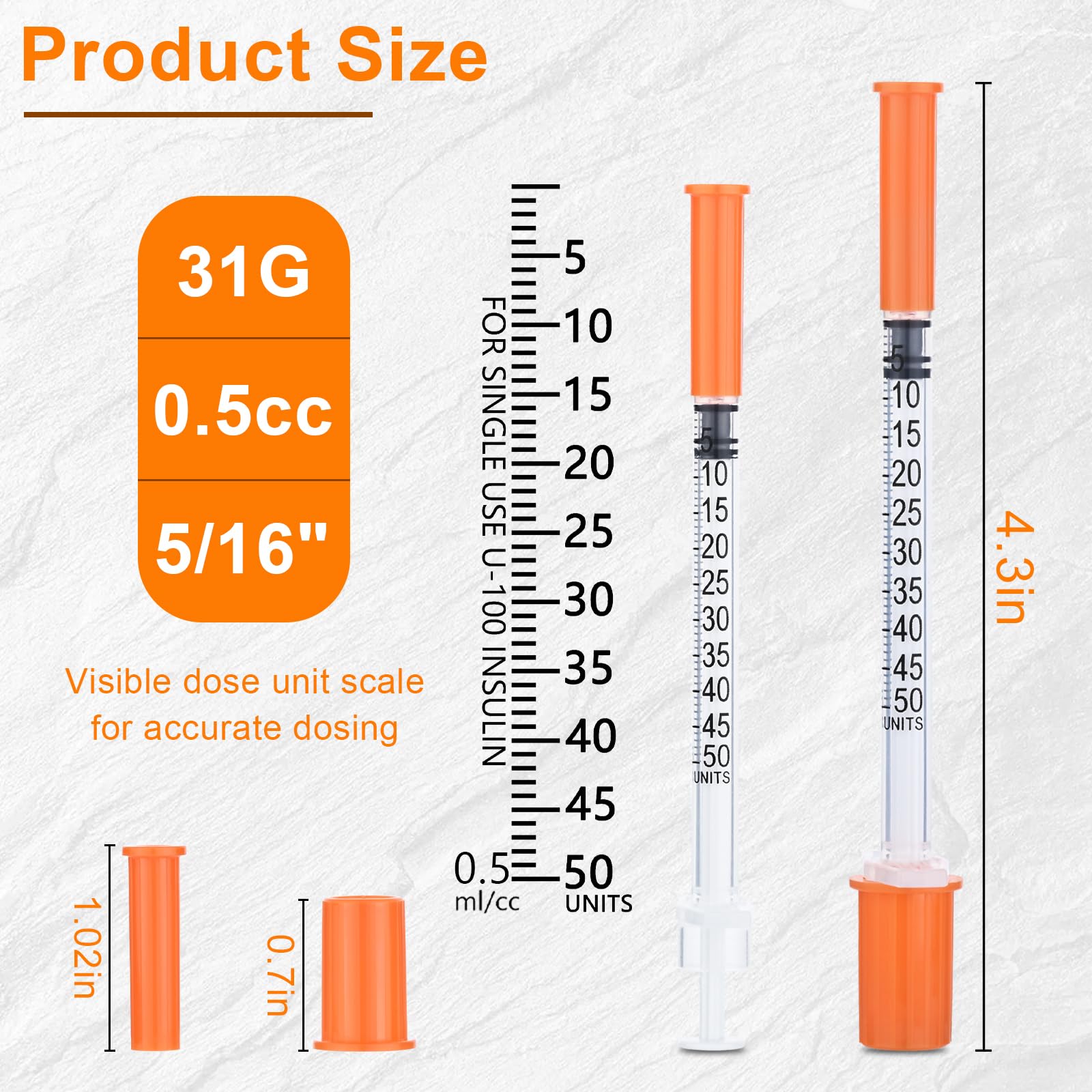 U-100 0.5ml Syringe 31 Gauge 5/16 Inch(8mm), 1cc Lab Supplies, Individually Sealed Pack of 20