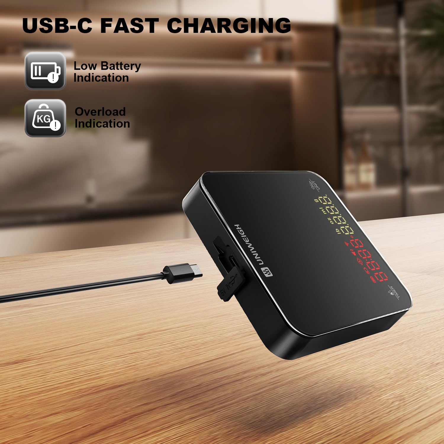 - 【Long Battery & USB-C Charging】:Upgraded rechargeable coffee scale with 3-month standby. USB-C charging port charges in 3hrs. Auto sleep after 2 minutes saves power. No more batteries!