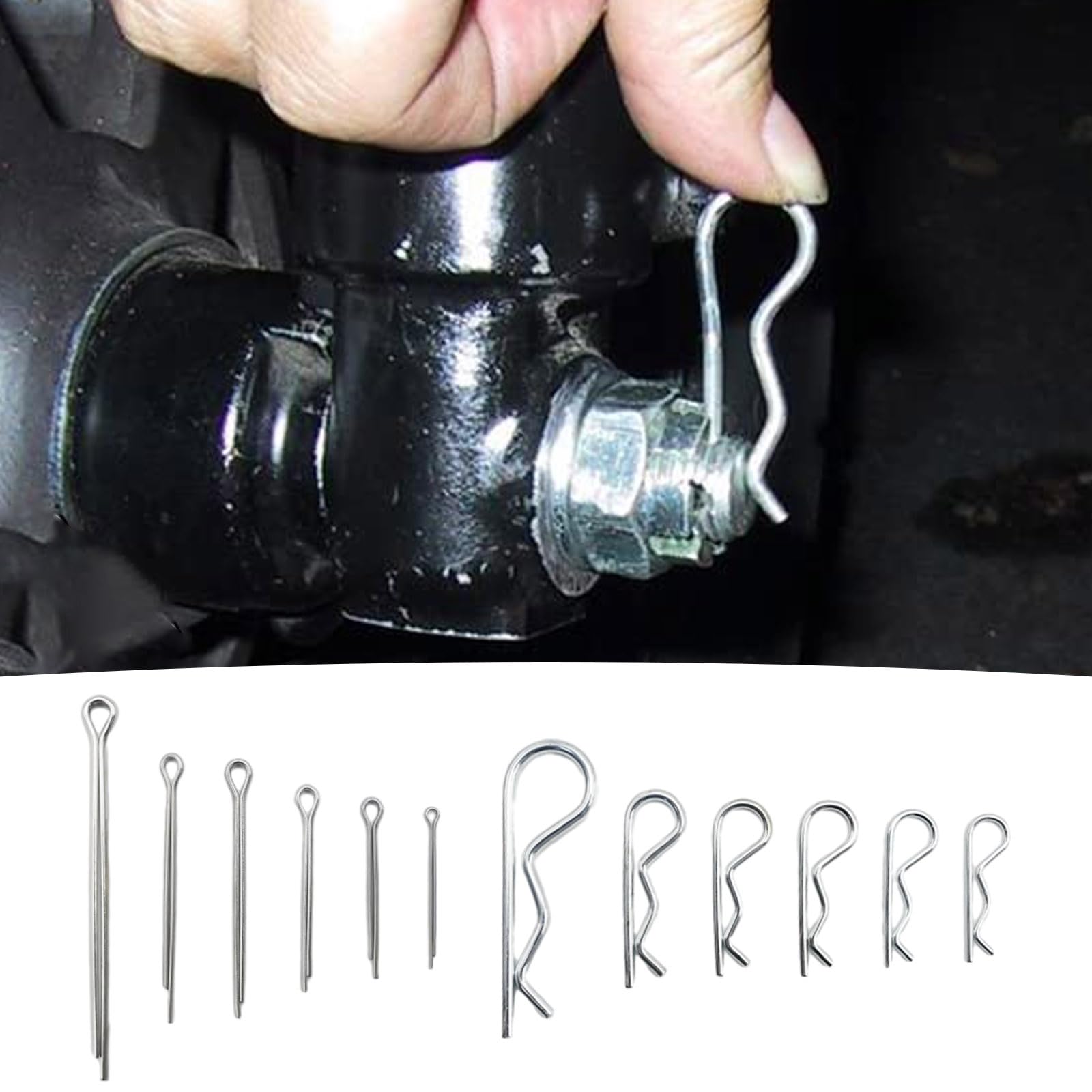 - Enhanced Convenience for Everyday Tasks: The cotter pin assortment kit includes various sizes and ample quantities to meet all your needs, making your life easier and more convenient. Whether securing wheel nuts or serving as temporary fasteners on a lawn mower, these split cotter pins and R clips are versatile and reliable.