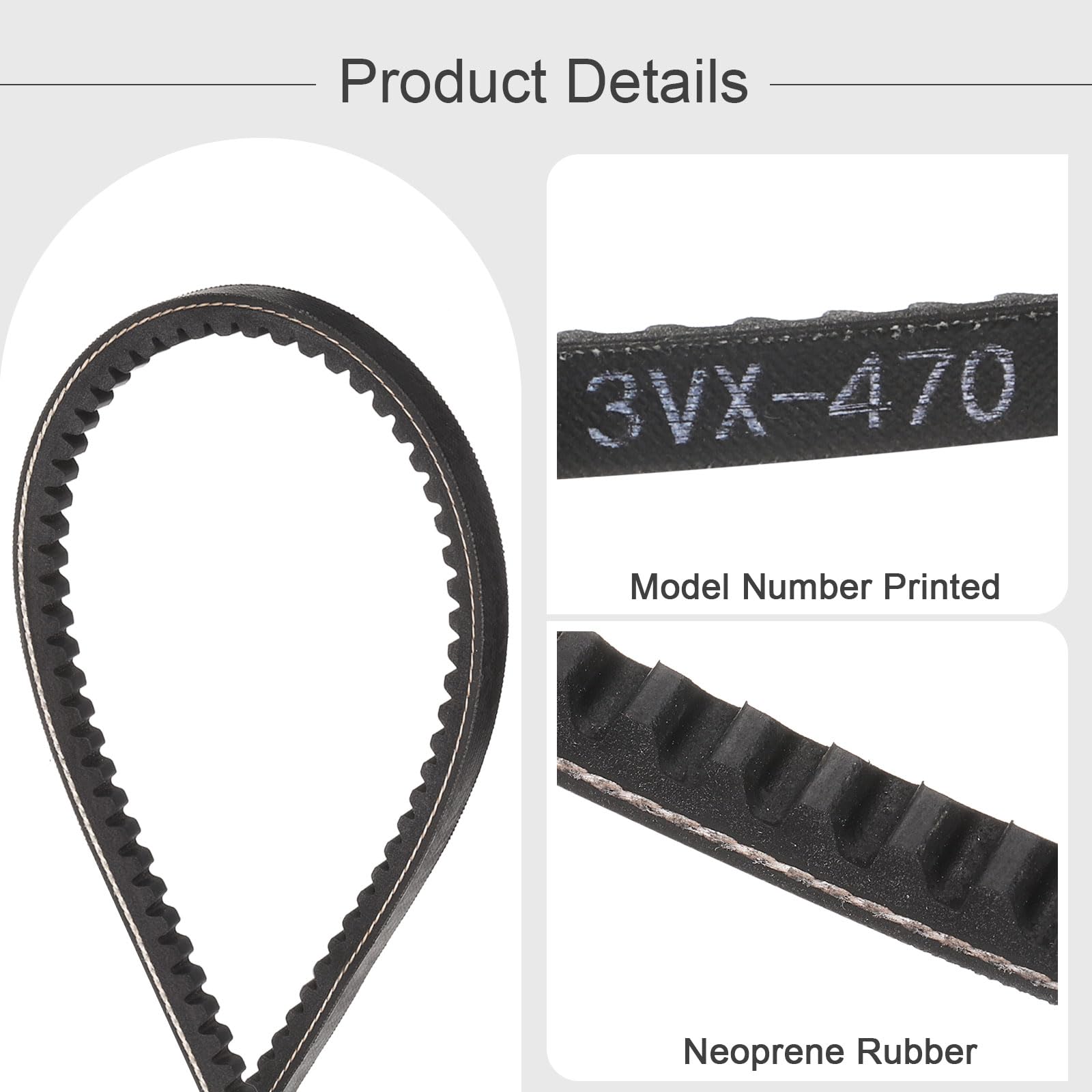 - Size - 3VX470 Cogged V-Belt, 47" (1194mm) Outside Circumference x 0.38" (9.7mm) Width x 0.315" (8mm)Thickness.