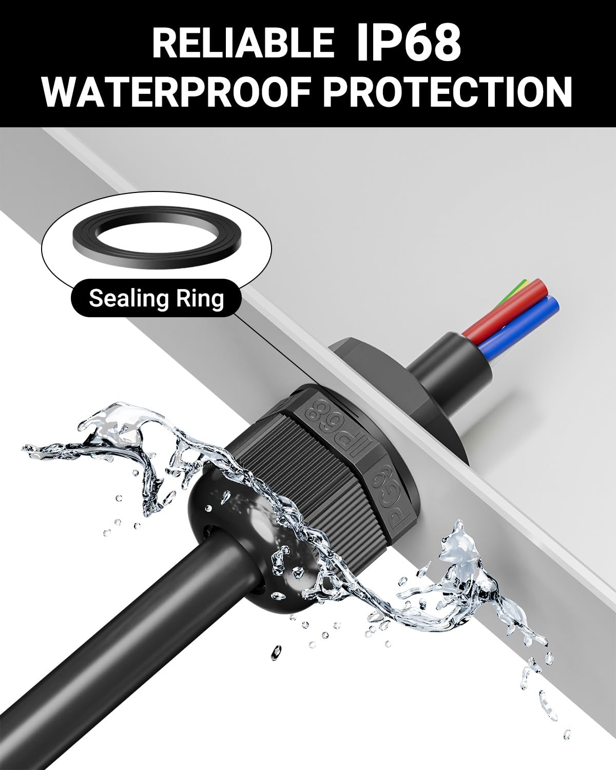- IP68 WATERPROOF AND DUSTPROOF PROTECTION: Each gland features a tight seal with a rubber sealing ring and clamping insert to deliver IP68-rated protection from water, dust, oil and debris - ideal for harsh outdoor and industrial conditions