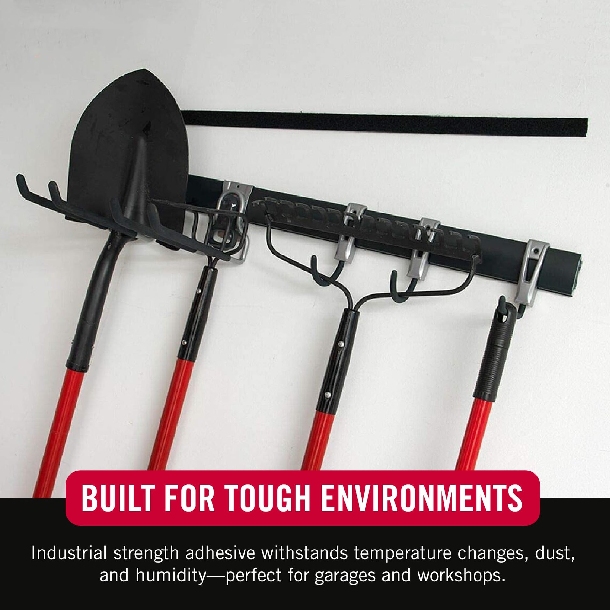 - NO TOOLS REQUIRED: No hammer, drilling, nails, or epoxy necessary, hook and loop industrial strength fasteners feature an easy peel and stick application, itβs the simple solution to organize on many surfaces without putting holes in the wall