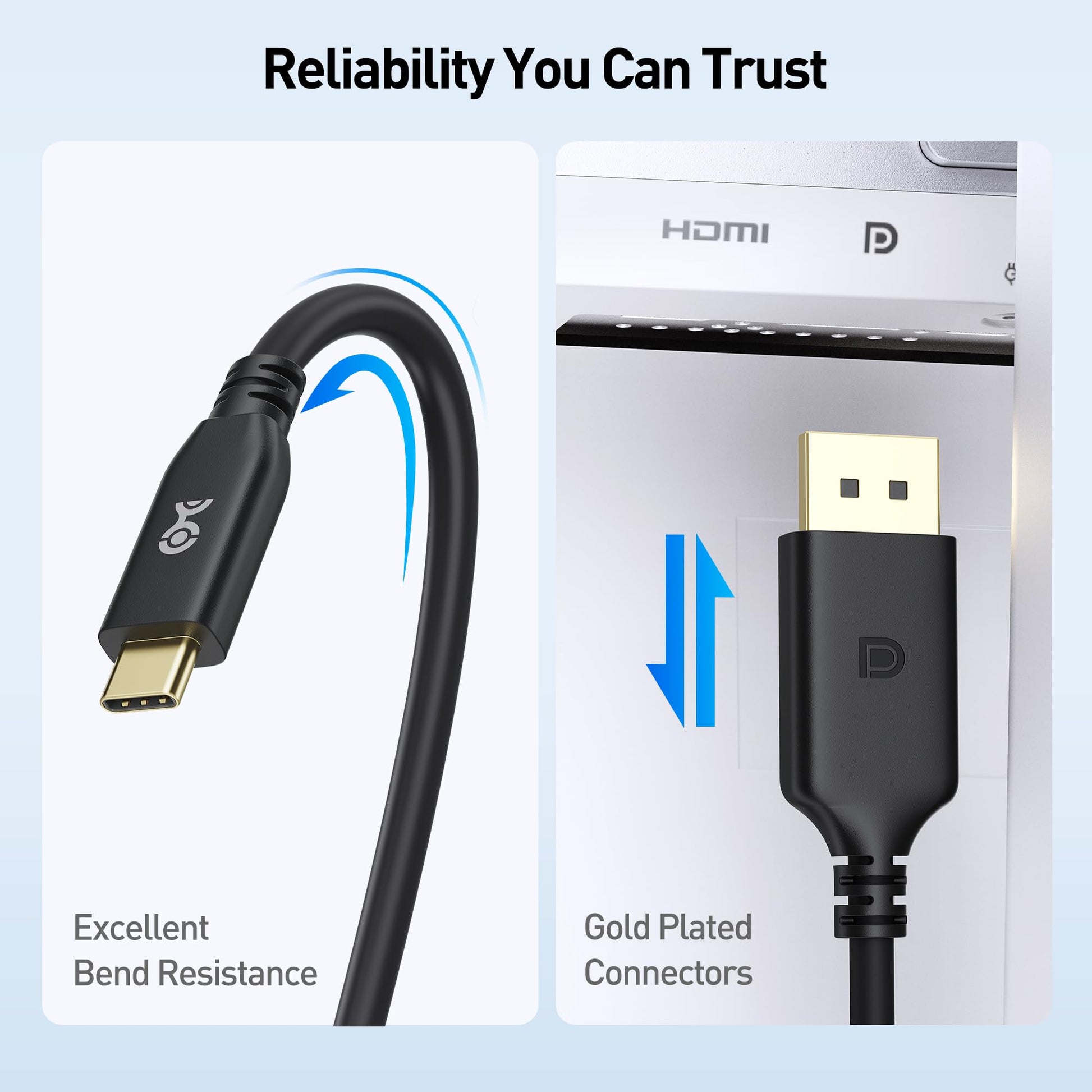 - Next-Gen Video Output with DisplayPort 2.1: Experience ultra-high-definition visuals with this USB-C to DisplayPort 2.1 cable, supporting resolutions up to 8K@120Hz, 4K@480Hz, or 4K@240Hz. Whether you're gaming, designing, or enjoying multimedia, this USB-C to DP 2.1 cable ensures vibrant colors, smooth motion, and crystal-clear images for a top-tier visual experience.