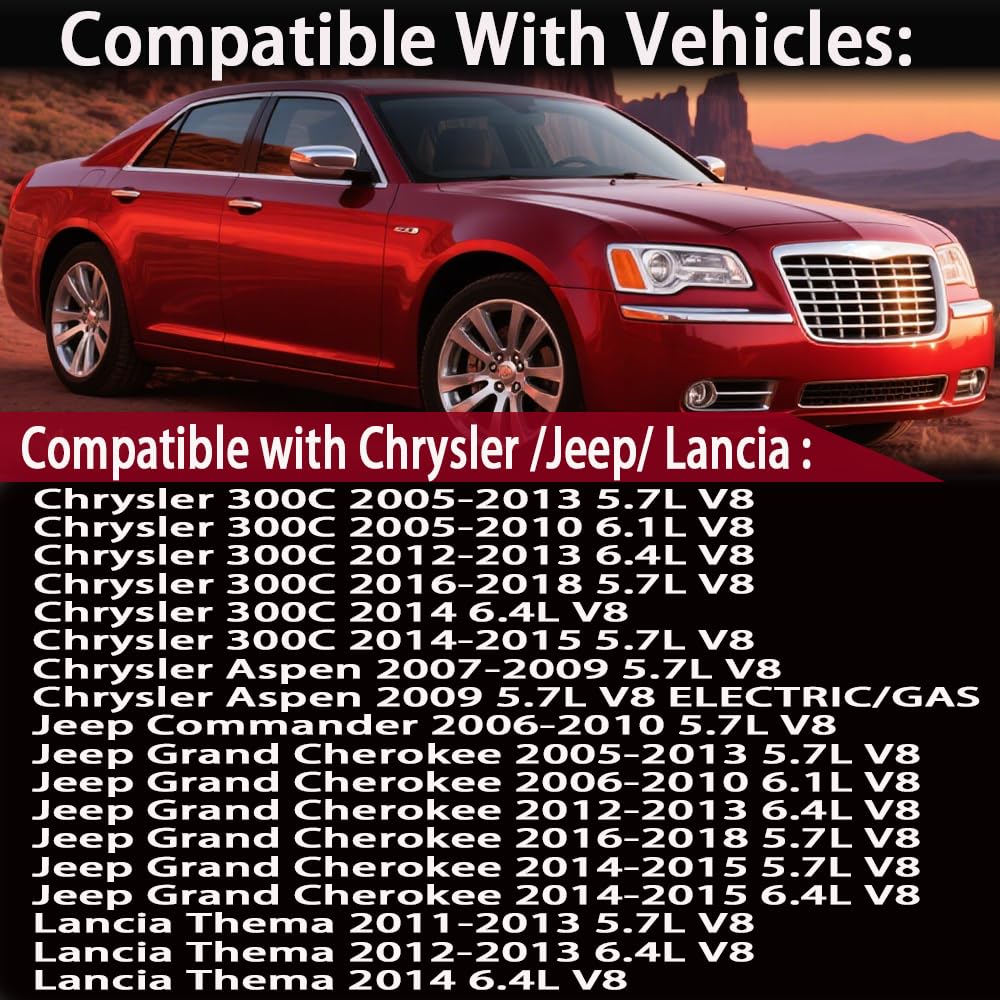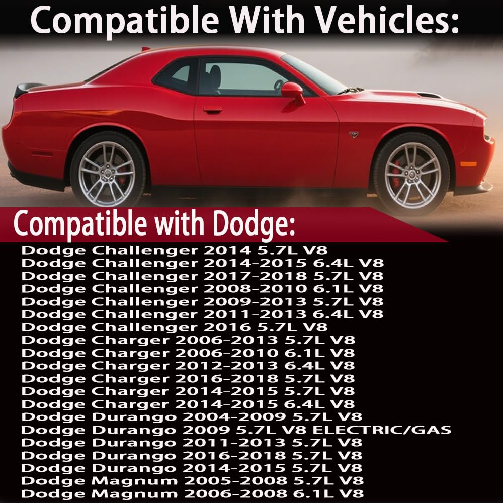 - 【Vehicle Suitability】Compatible with Dodge:2008-2009 Dodge Challenger 6.1L,2006-2009 Dodge Charger 5.7L 6.1L,2004-2009 Dodge Durango 5.7L,2005-2008 Dodge Magnum 5.7L 6.1L,2003-2009 Dodge Ram 1500 5.7L,2003-2009 Dodge Ram 2500 5.7L,2003-2009 Dodge Ram 3500 5.7L.Compatible with Chrysler:2005-2009 Chrysler Aspen 5.7L,2005-2009 Chrysler 300 5.7L 6.1L.Compatible with Jeep:2006-2009 Jeep Commander 5.7L,2005-2009 Jeep Grand Cherokee 5.7L 6.1L