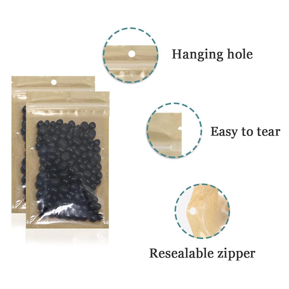 WACCOMT Pack Clear Kraft Paper Bags Zipper Packets Resealable Bag Seeds Envelopes for Zip Food Storage Bag Lock Flat Transparent Plastic Packaging Bag (100, 4.72x7.87 inch(12x20cm))