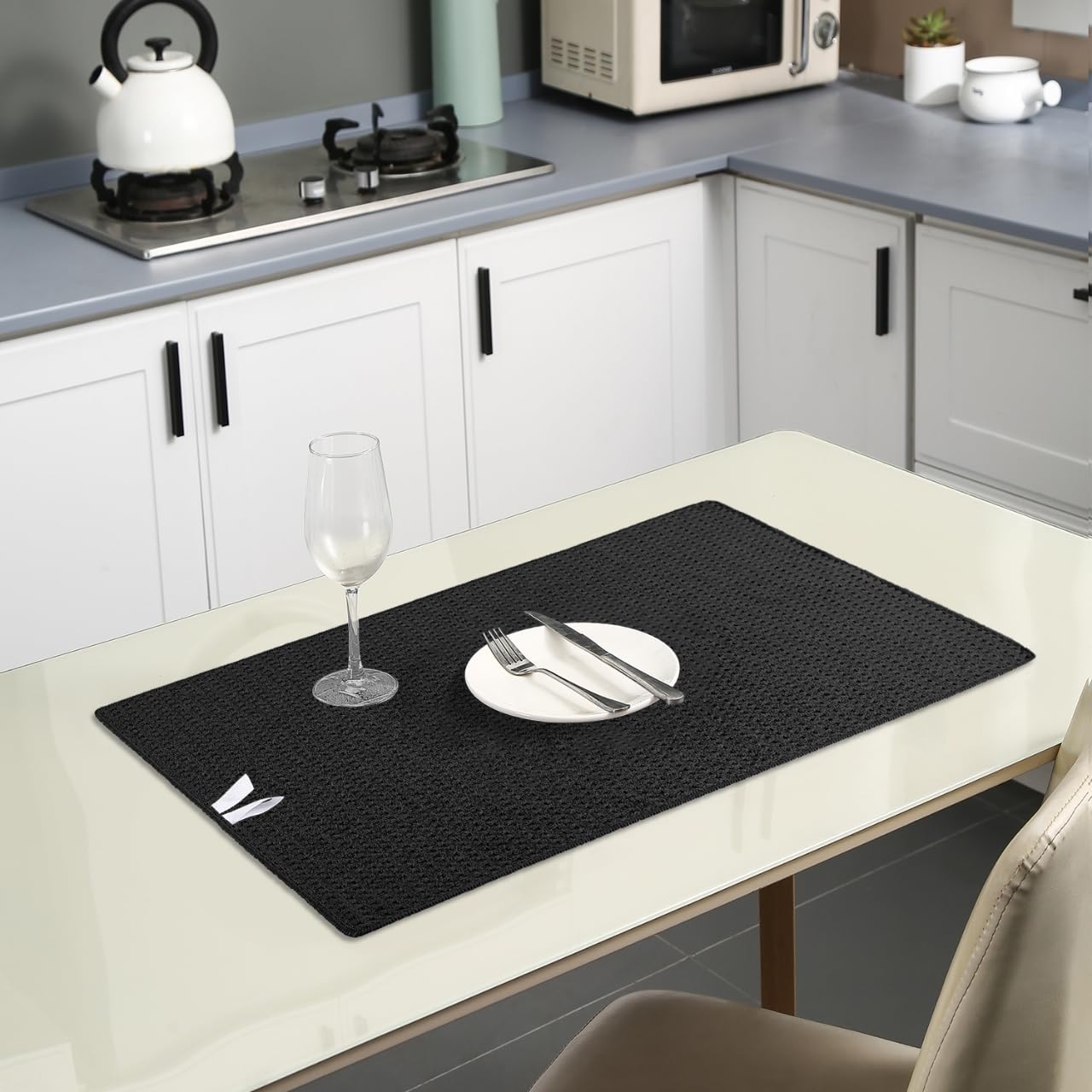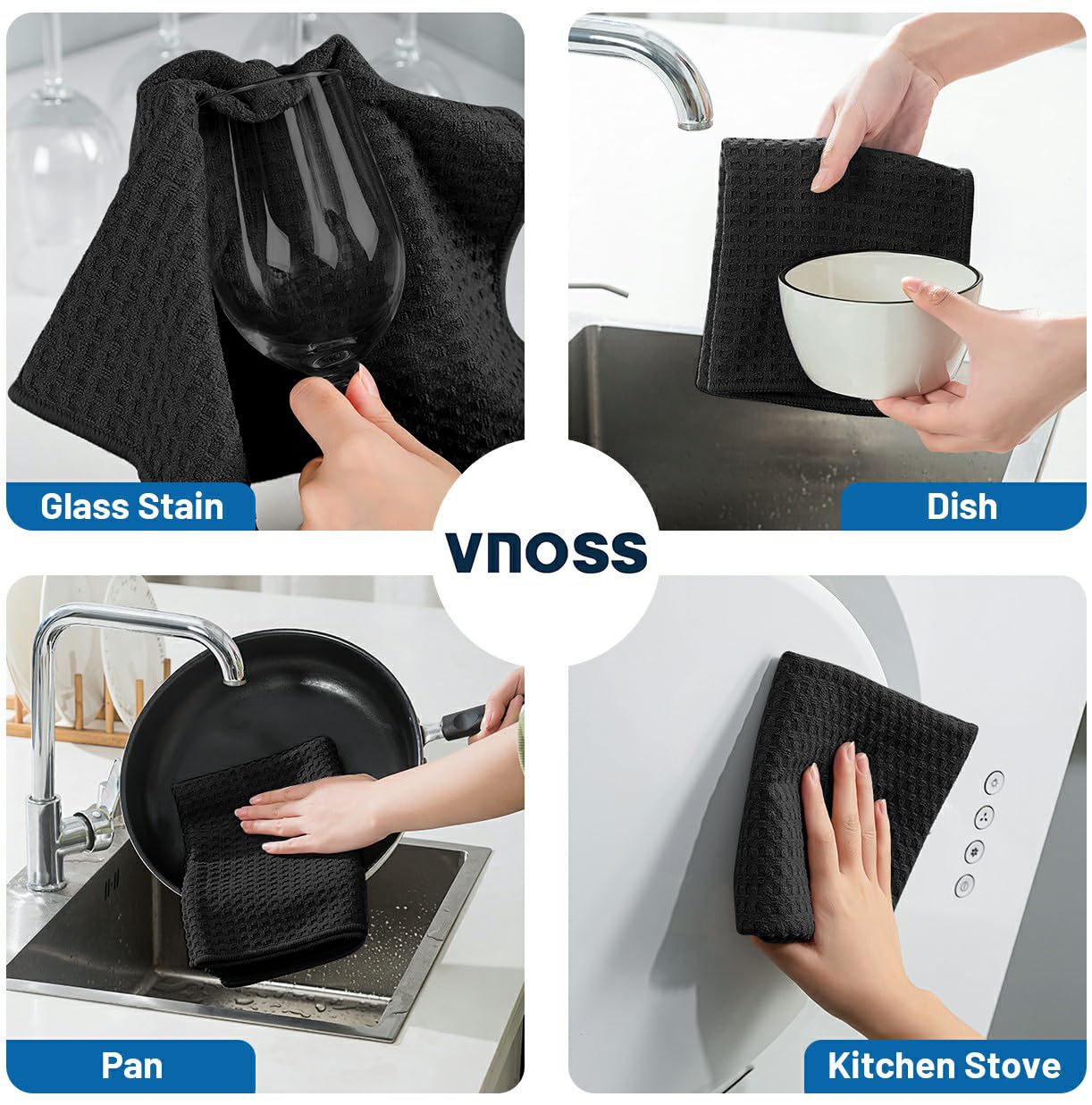 Waffle Weave Kitchen Towels and Dishcloths Set, 26 X 18 Inch and 12 X 12 Inch, Set of 10 Black Lint Free Dish Towels for Drying Dishes (Black, Kitchen Towel Set)