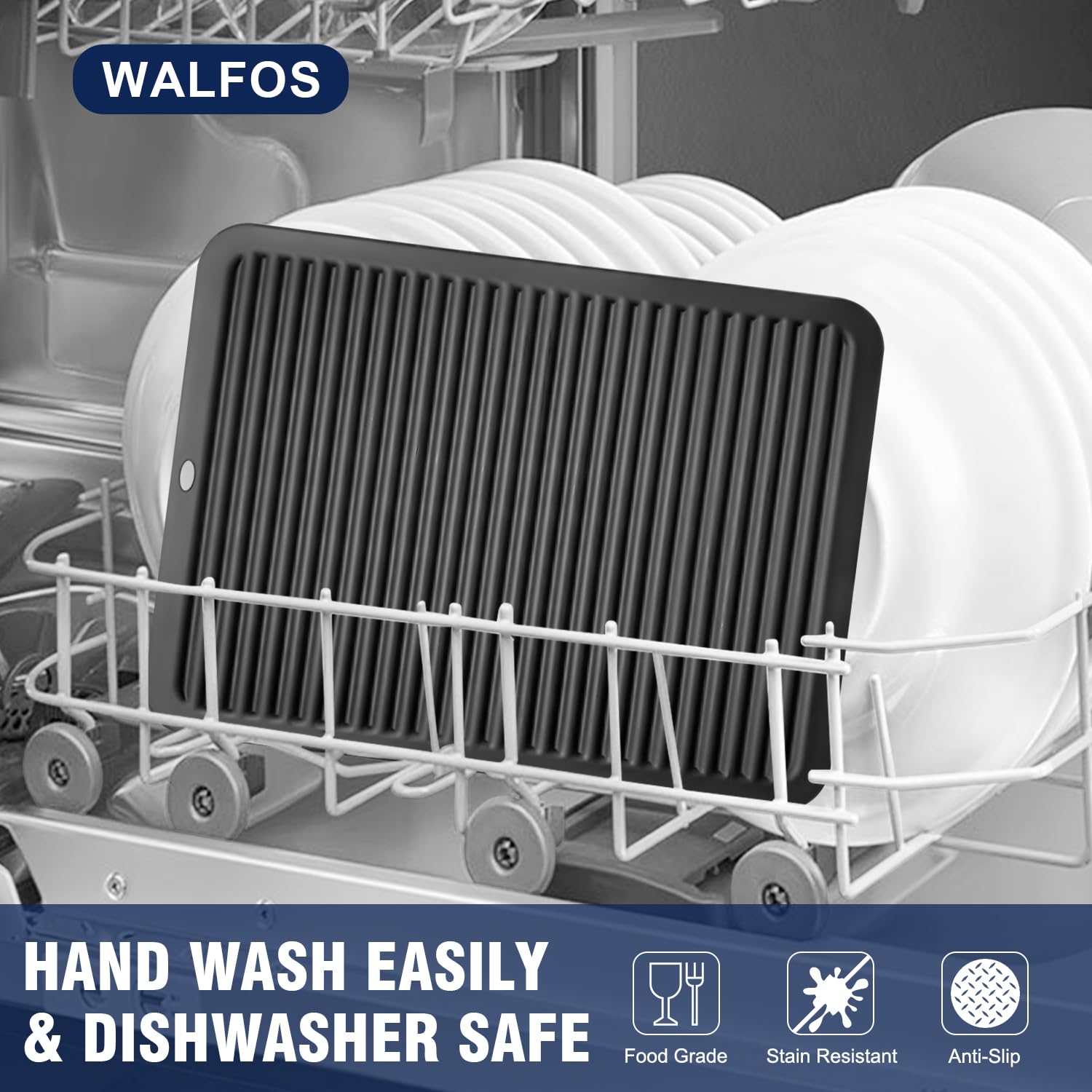 - EASY TO CLEAN UP: Walfos silicone mats for kitchen counter are hand washable and can be just thrown in the dishwasher. Almost anything can be easily washed off the non-stick surface and dried quickly