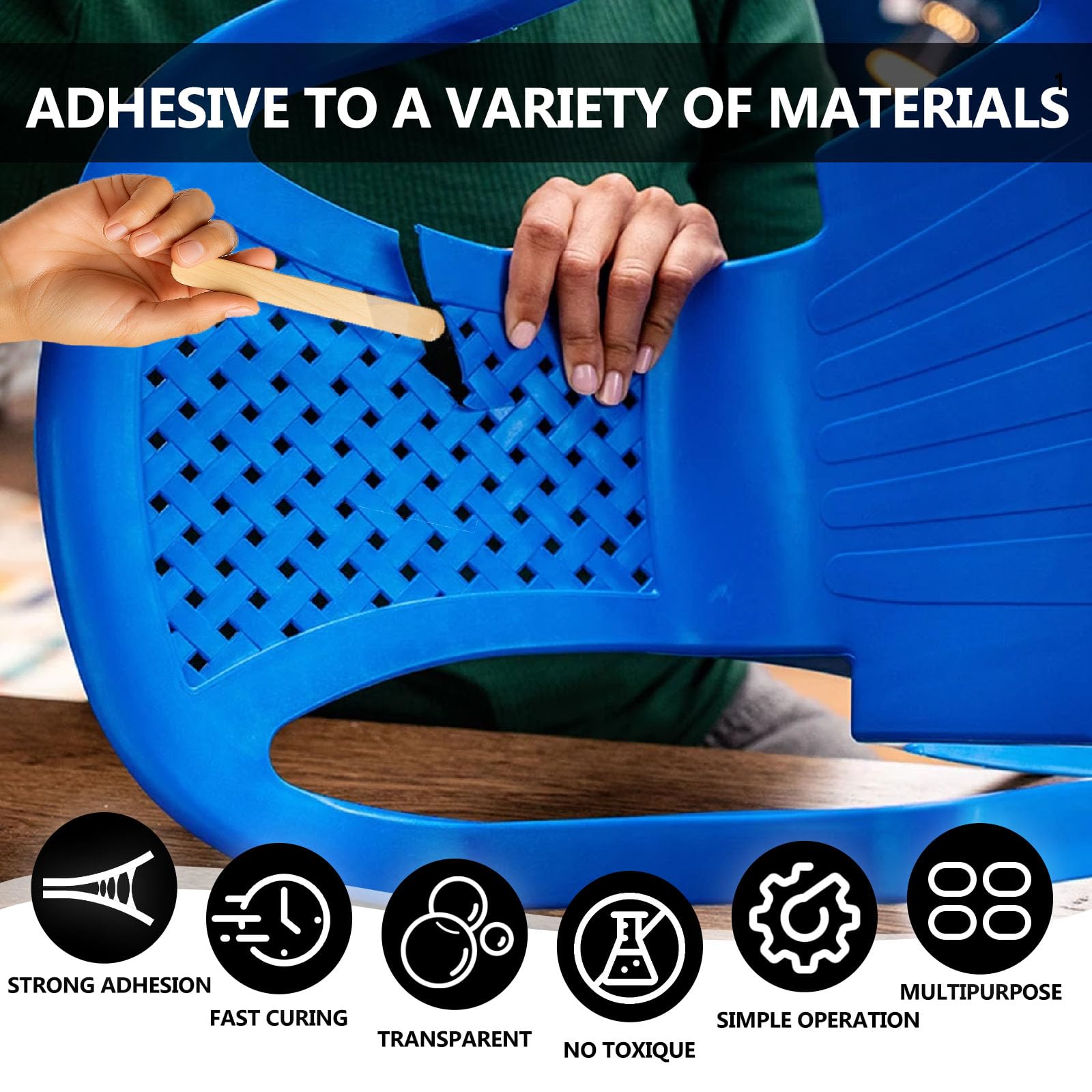 - 5 Minute Epoxy Kit: Our two part epoxy glue bottle caps have different colors. The set contains 2 bottles of AB clear epoxy glue (net 250 ml), a small wooden stick, gloves and mixing bowls. epoxy glue fully cured to get a strong, long lasting, waterproof repair