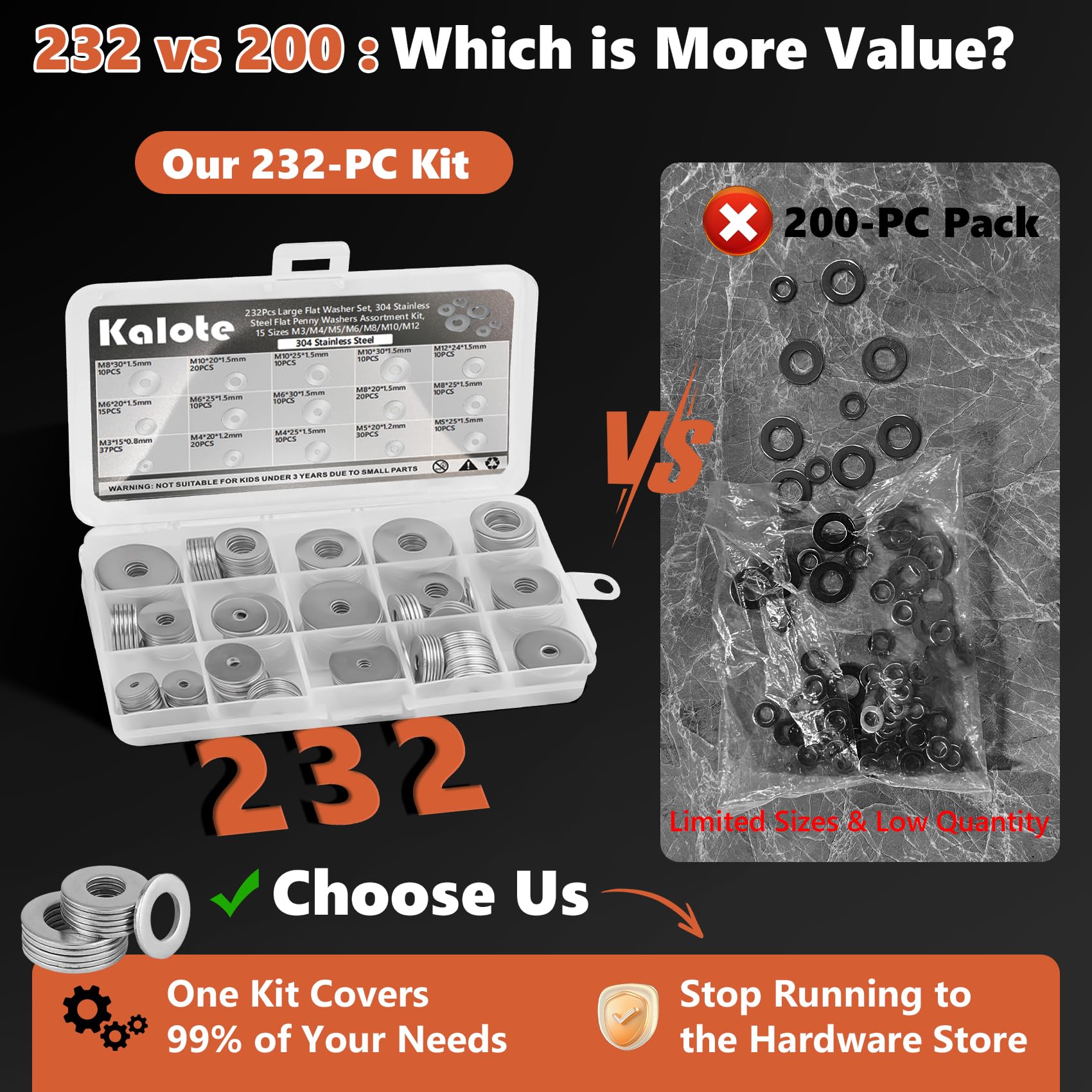 Tired of rusted, low-quality washers that fail when you need them most? Our 232-piece Flat Washer Assortment is engineered for professionals and serious DIYers who demand reliability and performance. Made from 304 stainless steel, this kit is your ultimate solution for a vast range of fastening challenges.