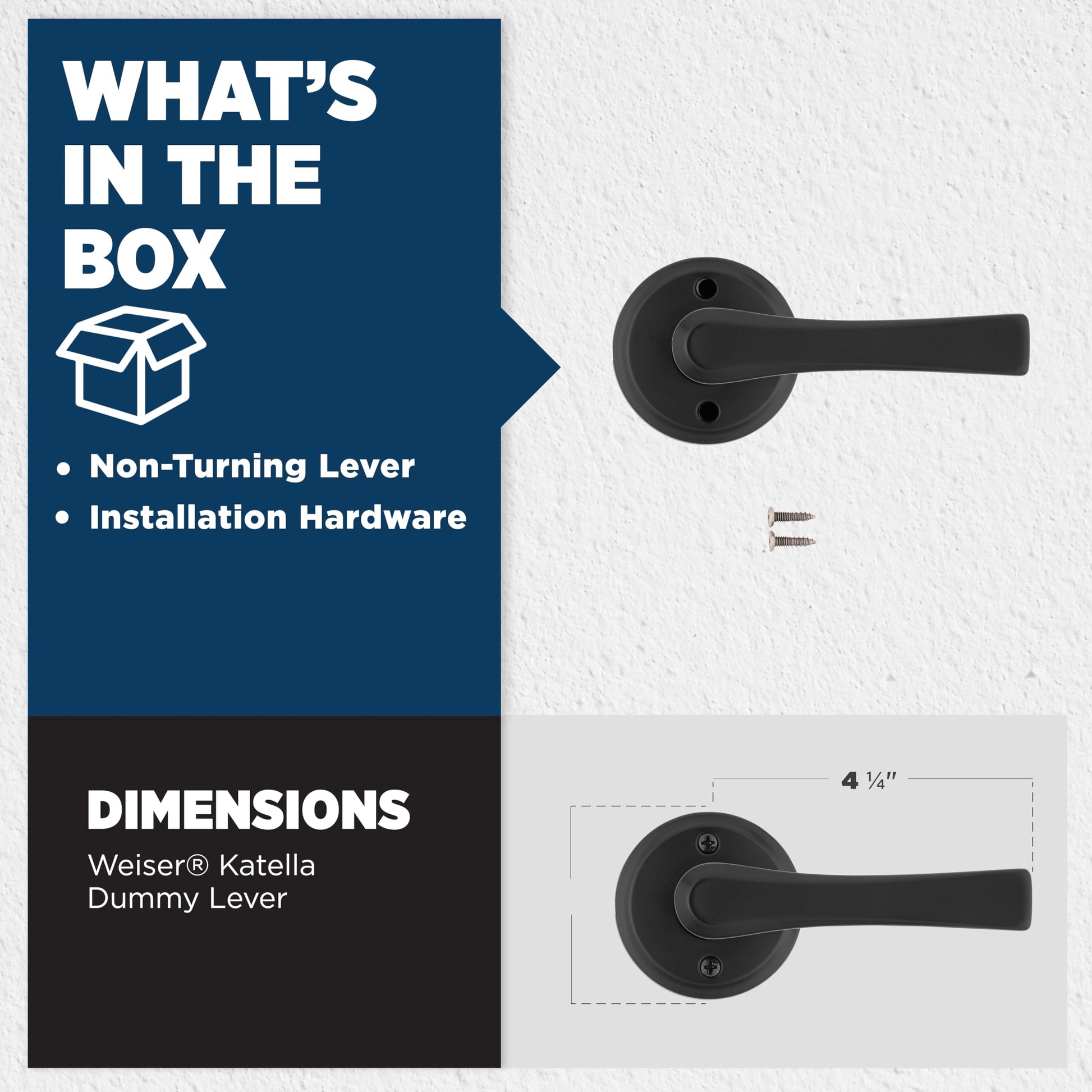 Weiser Katella Matte Black Dummy Door Handle, Reversible One Sided, Individual Closet and French Door Non-Turning Door Handle