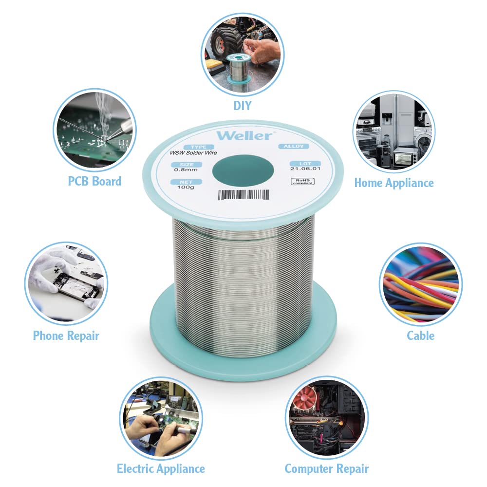 Weller WSW SCN M1 (T0051404799) Solder Wire, Dia: 0.5 mm / 0.020 in, Wt: 100 g / 3.527 oz, Alloy Sn99.3Cu0.6Ni0.05, Flux Content 3.5%
