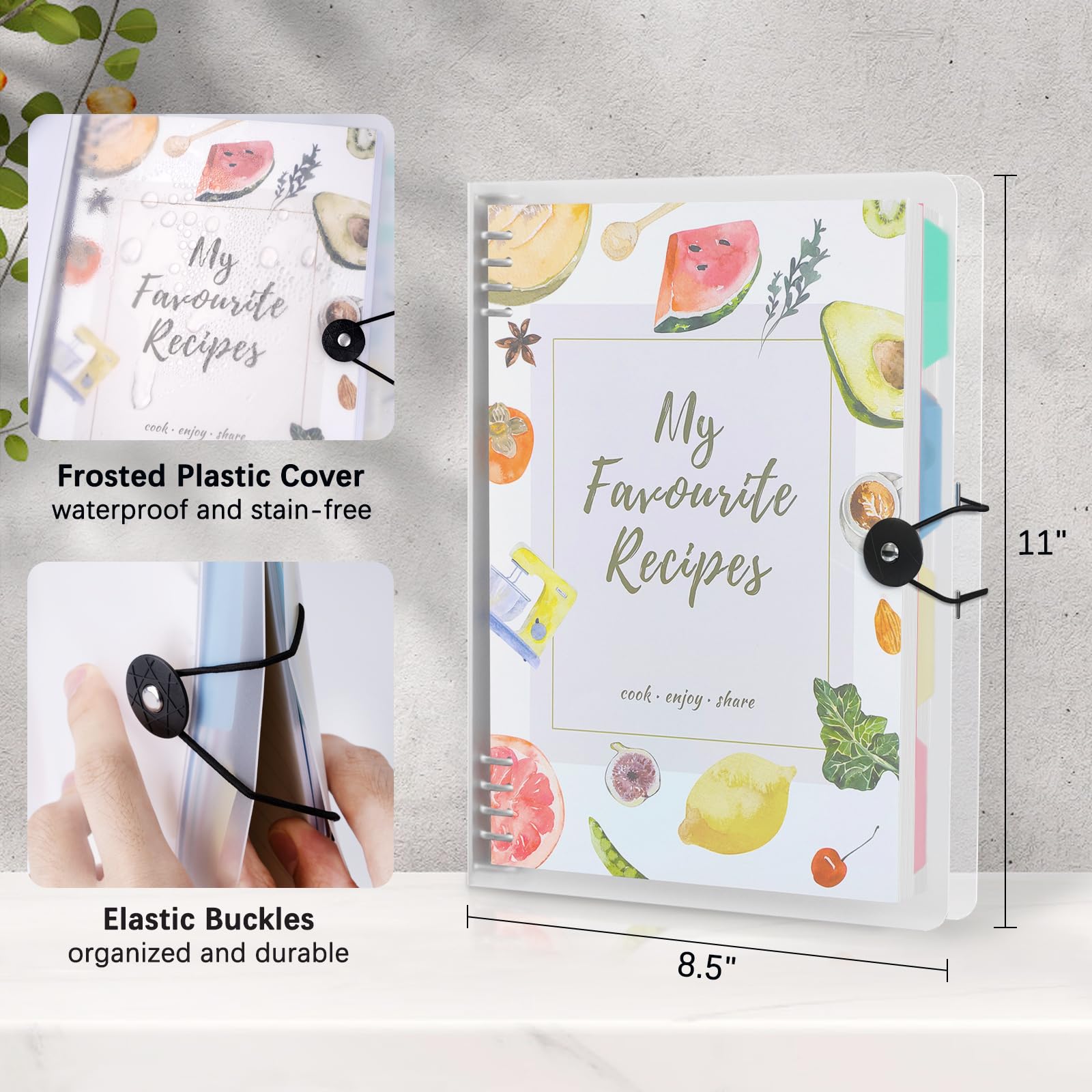 - WATERPROOF & DIRT-RESISTANT & DURABLE: This recipe binder is designed with an 8-ring binder shell. You can take out the blank recipe pages to write personalized recipes, or write directly on the pages without clogging hands. The frosted cover is made of durable plastic, allowing easy wiping of water stains when used in the kitchen. Additionally, the uniquely designed elastic buckle is used to securely store the recipe pages and prevent them from falling apart.