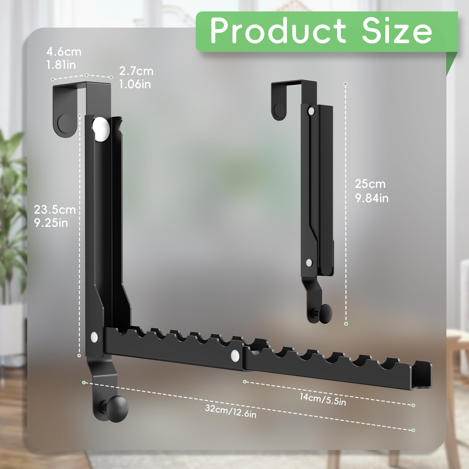 - Extendable Pole for more capacity:The over the door hooks has a total of 10 stalls, over the door hooks for hanging greatly increases storage space, and the foldable design of this door hooks for hanging is is also very compact, so it can be put away when not in use.