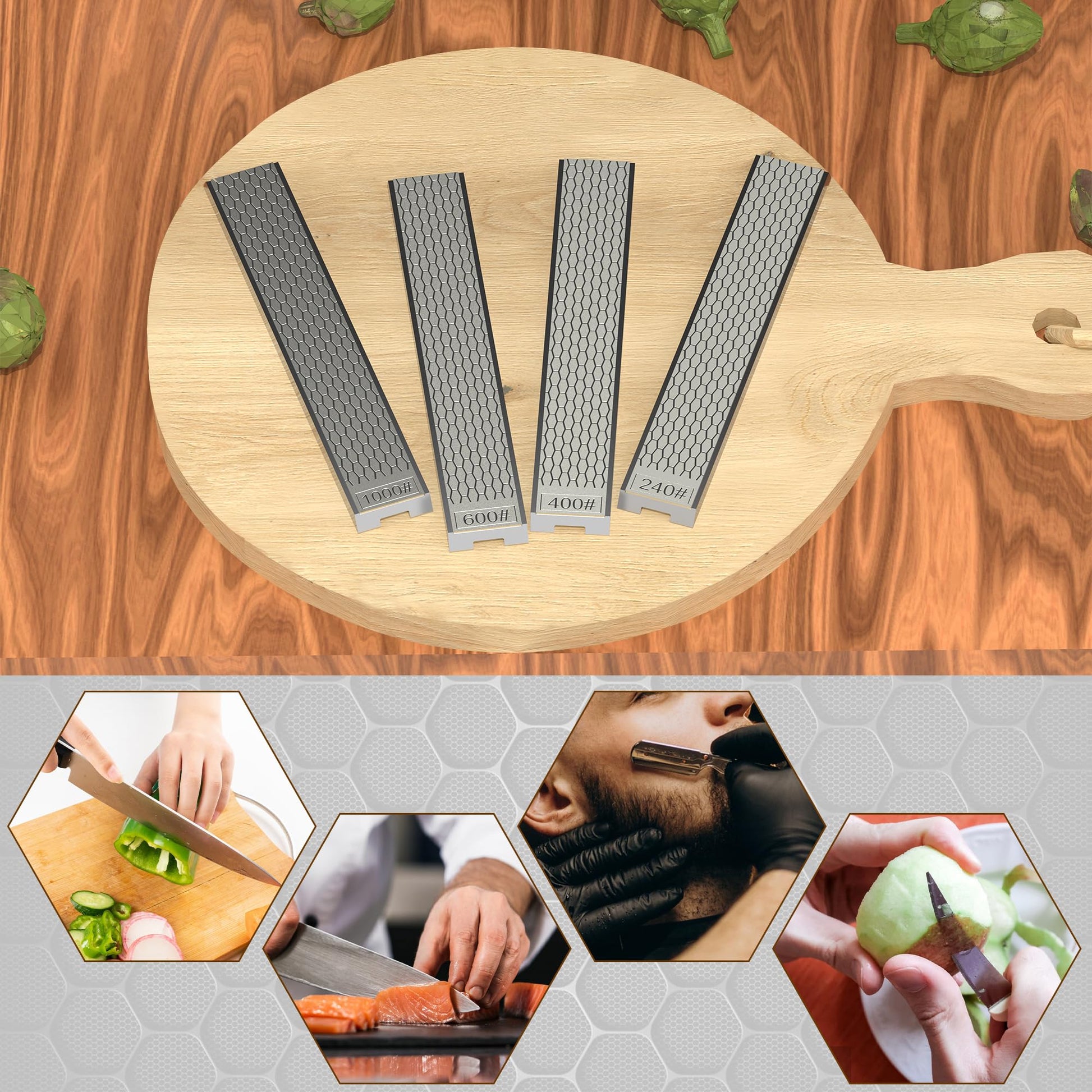 - Durable: Crafted with high-quality diamond material with aluminum base , these sharpening stones are built to last. Diamonds are renowned for their hardness, making them ideal for effectively sharpening a wide array of blade materials, including stainless steel, carbon steel, and ceramic.