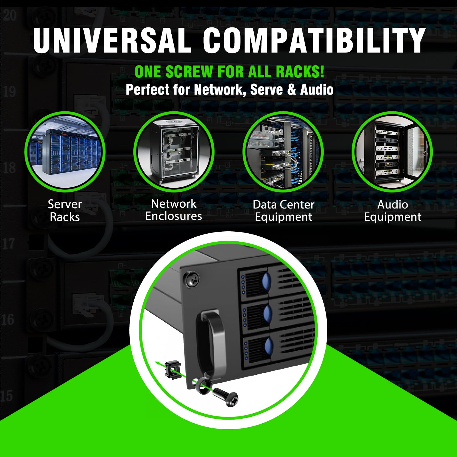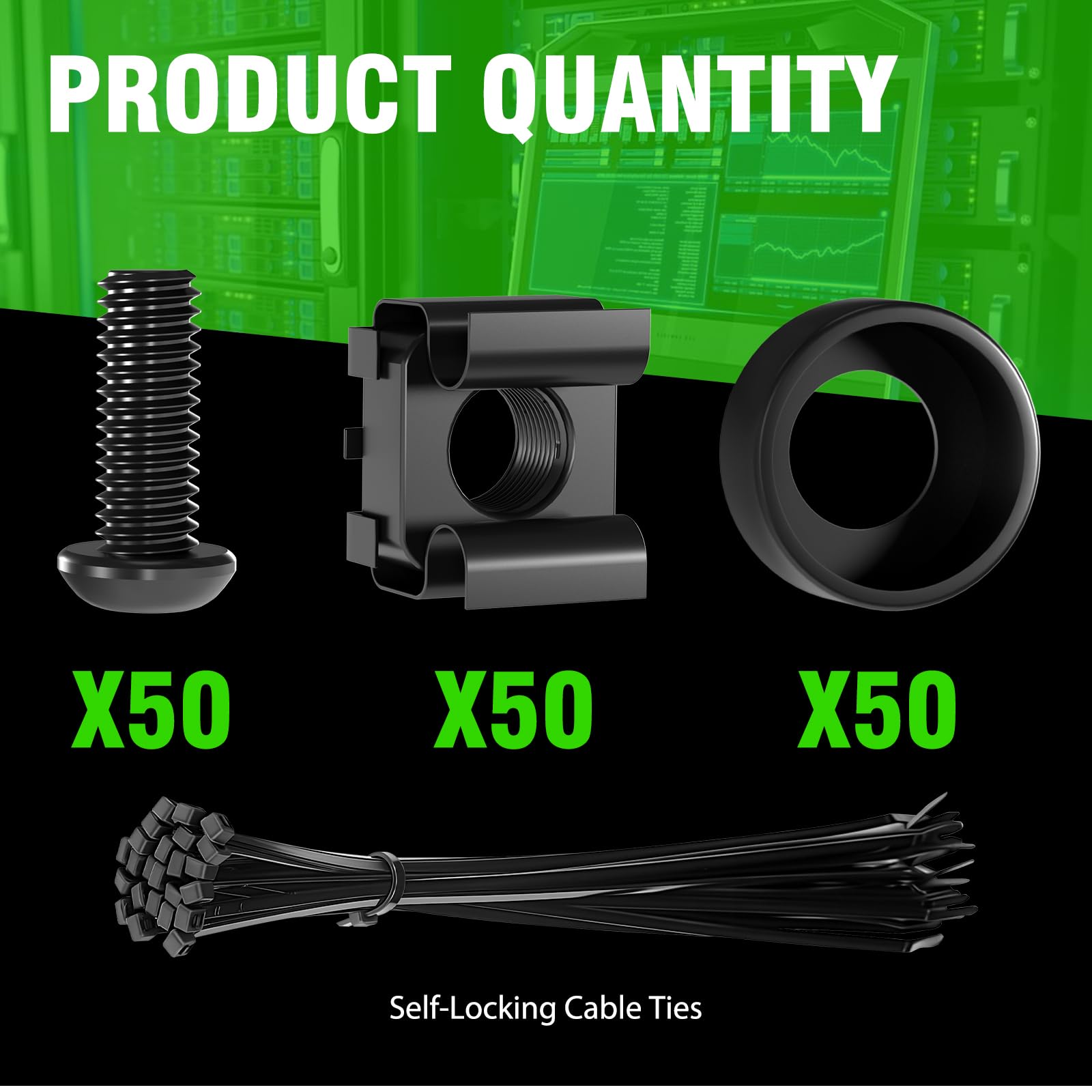 - 【Wide Application】 XOOL M6 Rack Mount Screw Kit is great for mounting your rack server cabinets, server shelves, A/V device enclosures, and more. These M6 cage nuts and screws are universally compatible with all square-hole racks and cabinets. Easily mount your equipment using this convenient kit, which comes with everything you'll need to get the job done. These self-locking cable ties are perfect for computer, appliance and electronic cord organization, wire management and storage.