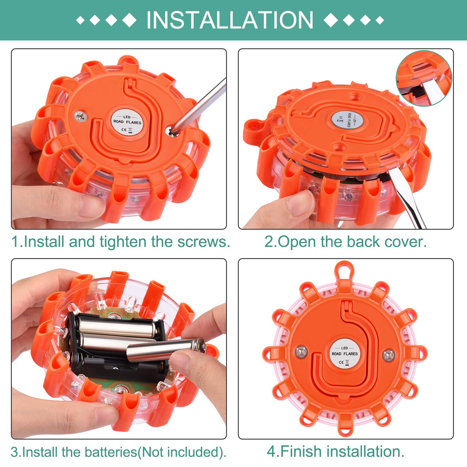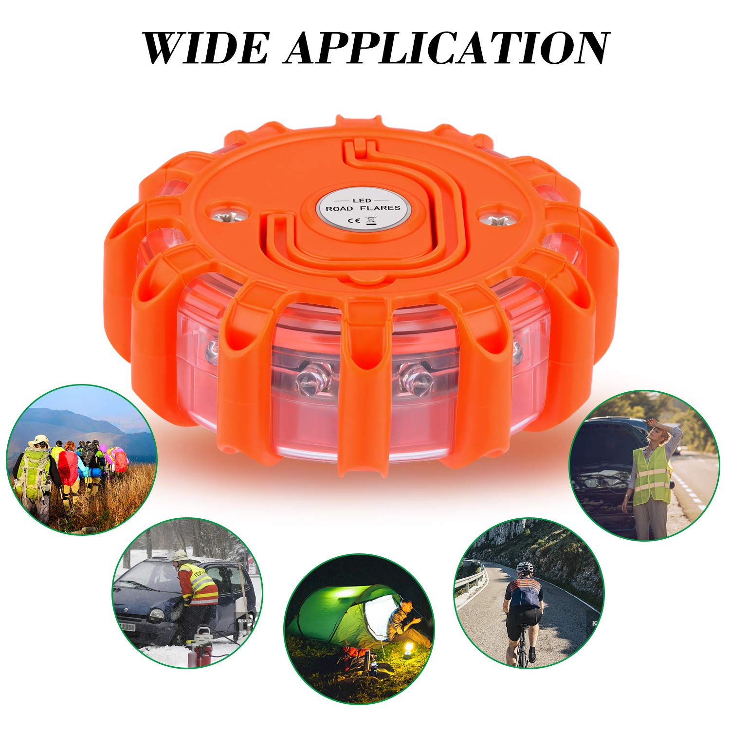 *High Quality Material: LED Road Flares are made of environmental protection ABS which makes the LED warning light shatterproof, crush-proof and rainproof, perfect for auto car trunk emergency, boat or bicycle emergency.
