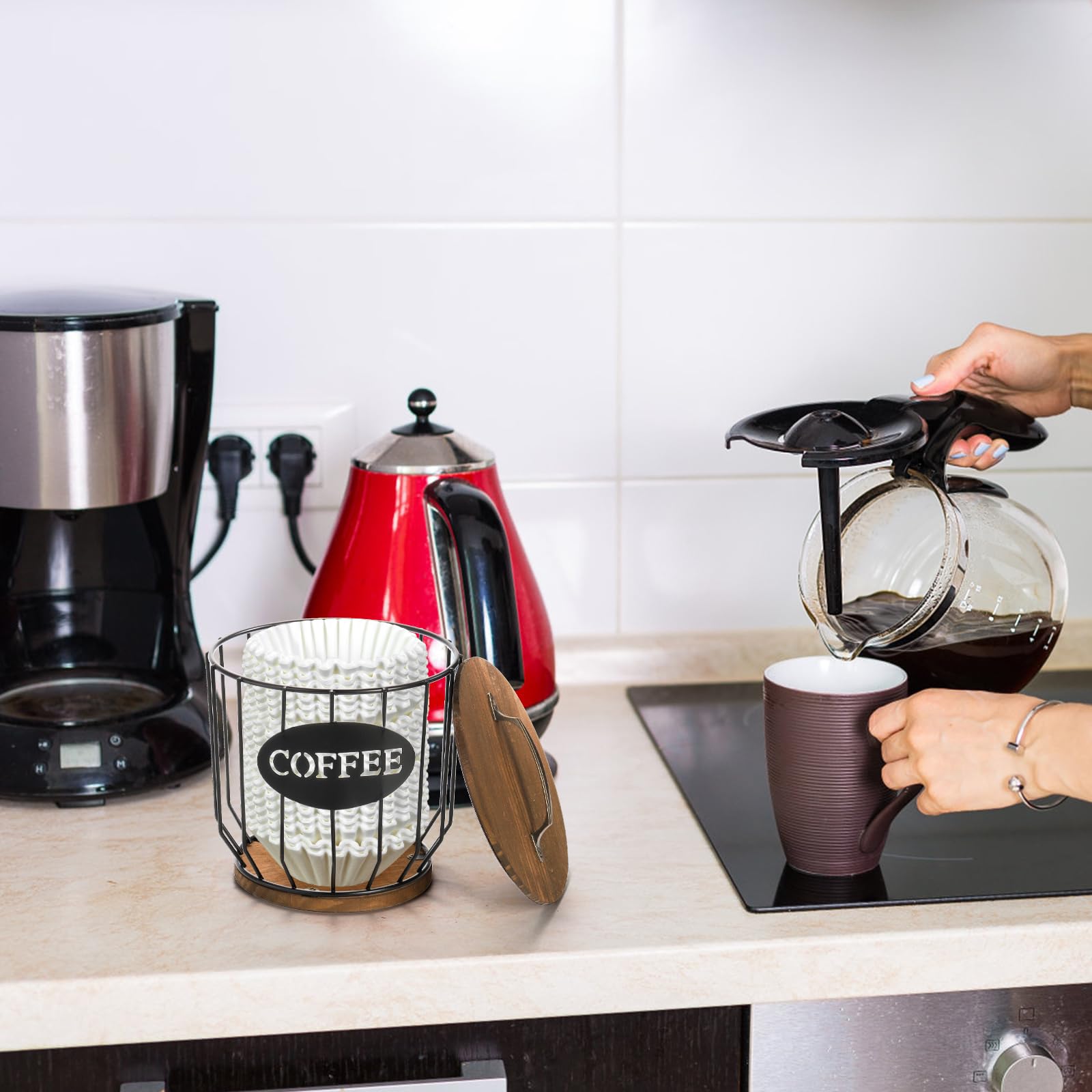 - Metal Wire Construction: Classic round shape coffee filter organizer is durable and not easily deformed, anti-corrosion, a weighted wooden base sits firmly on your countertop, no scratches.