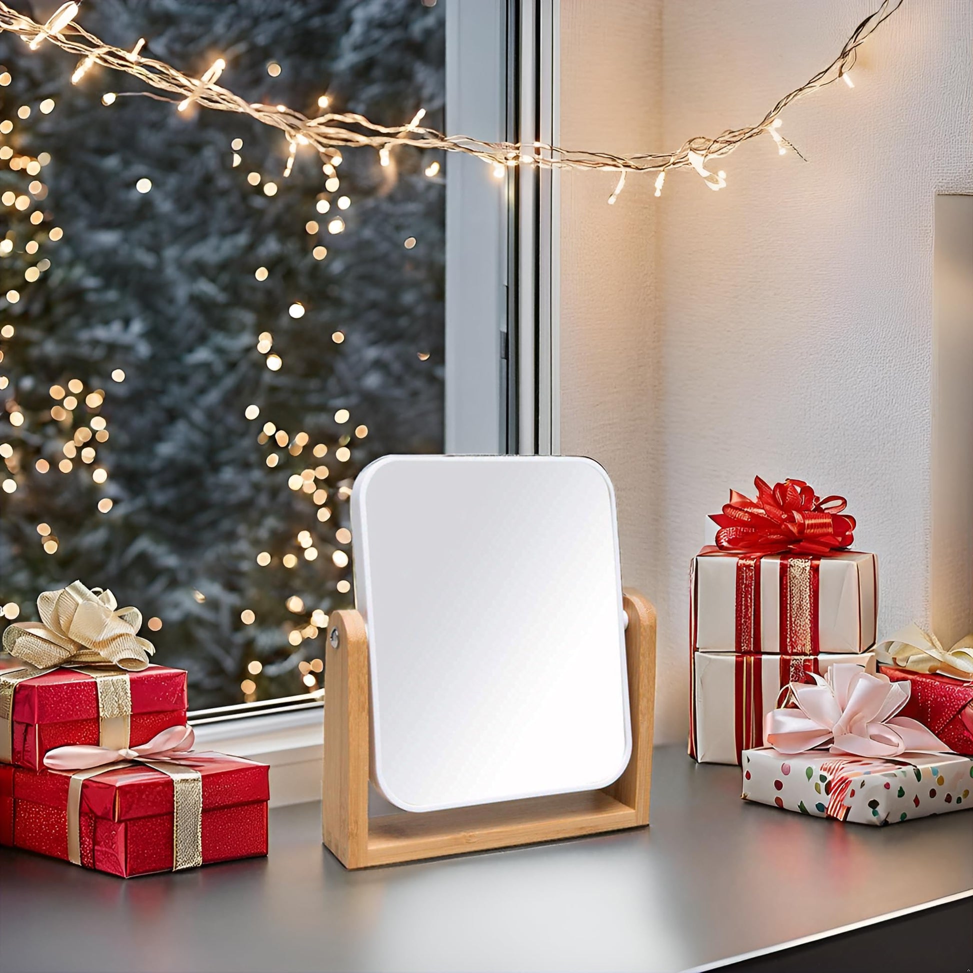 - PORTABLE & VERSATILE - This beauty mirror can be placed on every desktop or table, takes up small space on bathroom countertops, vanities, dressing tables, makeup tables or bedroom dressers. simple and lightweight design, can be used as a handheld mirror for morning makeup or a shaving mirror, etc.