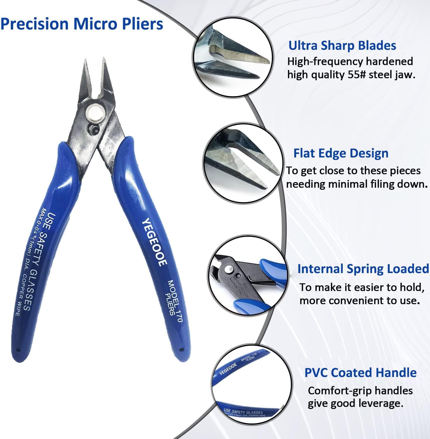 - 【Sharp & Strong Blades】: Made of #55 high carbon steel,12mm long heat-treated carbon steel jaw with angled head design,ultra sharp, our clean cut pliers can cut up to 16AWG soft iron wire,14AWG electrical cables etc