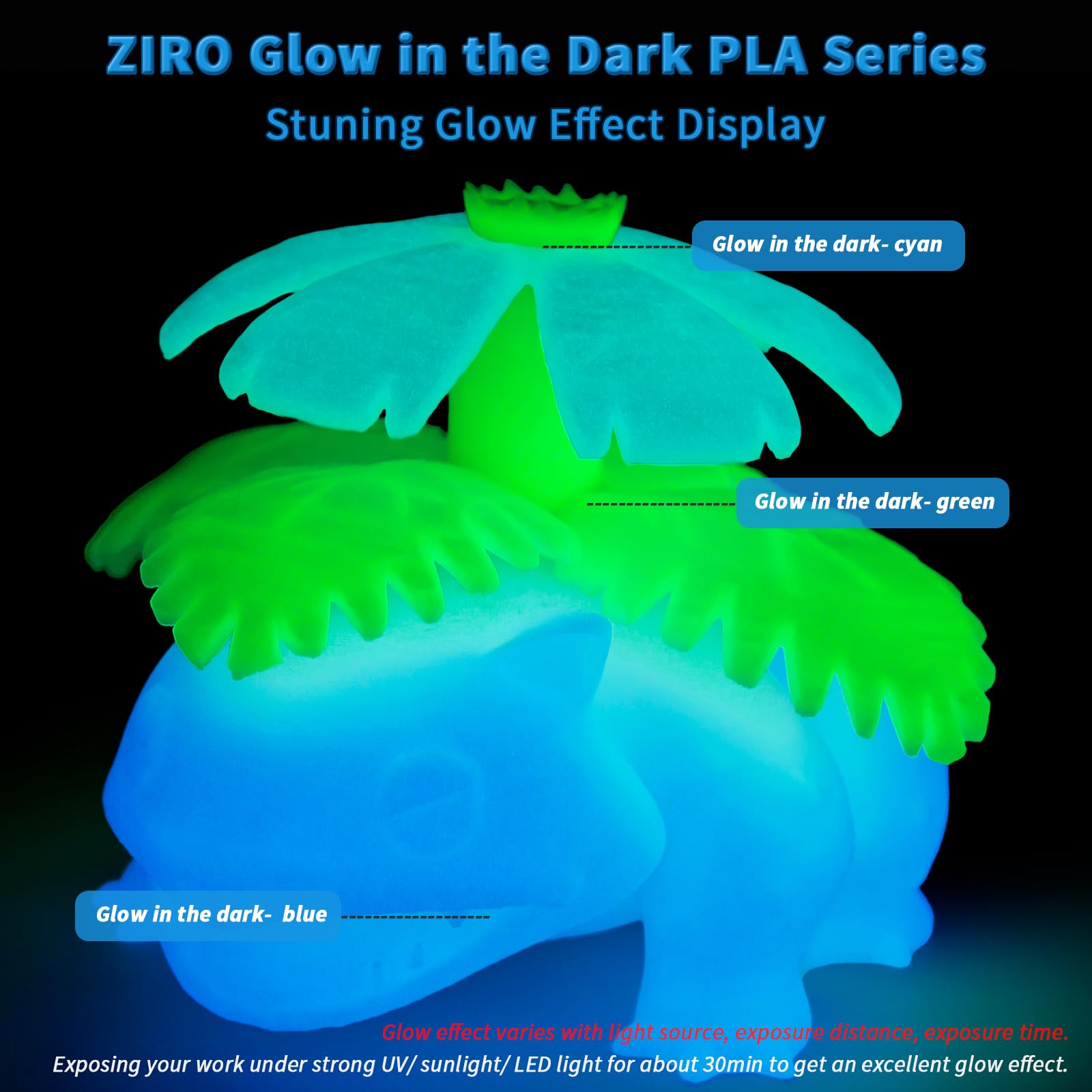 ZIRO Glow in The Dark Filament, PLA Filament 1.75mm, Luminous 3D Printer Material, Strong Glow Effect 1KG(2.2lbs) Spool, Dimensional Accuracy +/- 0.03mm, fit Most FDM 3D Printers, Blue