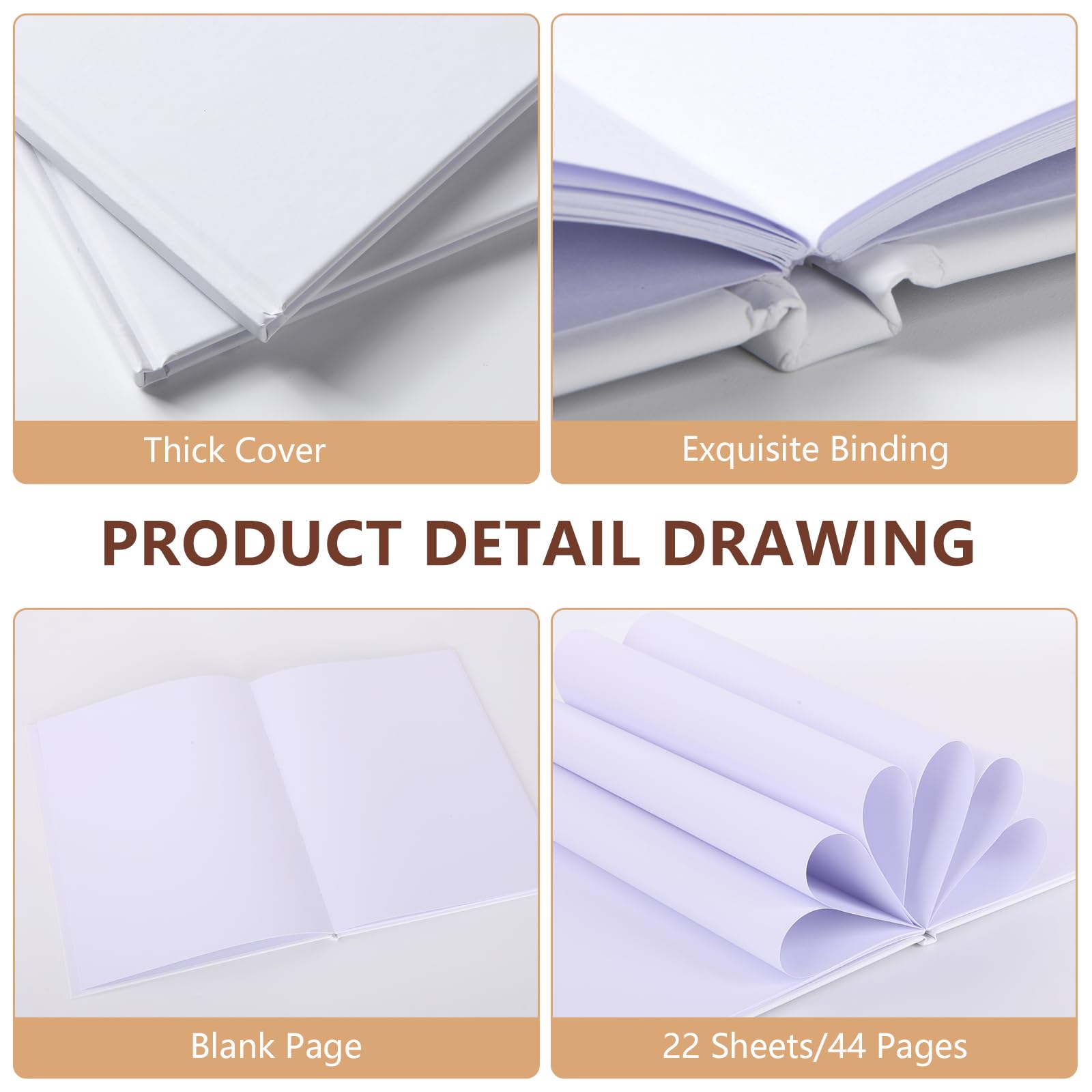 zmybcpack 6 Pack White Hardcover Blank Book 8.5x11 inch, Blank Story Writing Book Unlined Sketch Book, White Blank Page Notebook for Journaling, Sketching, Writing (22 Sheets/ 44 Pages Each Notebook)