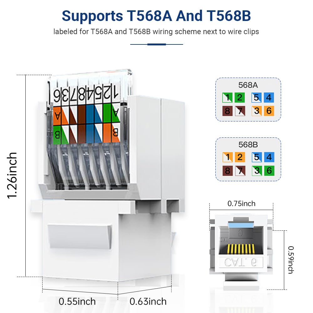 - Easy To Use: This toolless UTP CAT6 keystone Jack is a female RJ45 connector for networking; Simply insert the leads following the color coding, and press down the clear cover.